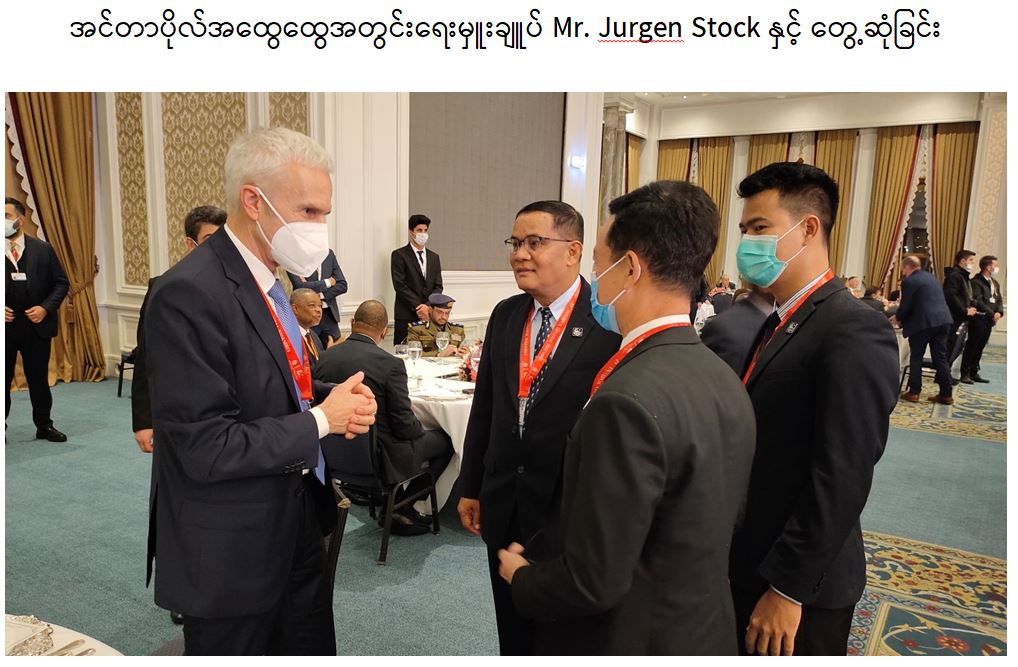ပြည်ထဲရေးဝန်ကြီးဌာန၊ ဒုတိယဝန်ကြီး၊ ရဲချုပ် ဒုတိယဗိုလ်ချုပ်ကြီး သန်းလှိုင်သည် အင်တာပိုလ် ညီလာခံ တက်ရောက်စဉ်အတွင်း အင်တာပိုလ်အမှုဆောင်ကော်မတီဥက္ကဋ္ဌ Mr.KIM Jong Yang၊ အထွေထွေအတွင်းရေးမှူးချုပ် Mr. Jurgen Stock တို့ကို သီးခြားတွေ့ဆုံသည်။ ထို့အပြင် ၂၀၂၂- ၂၀၂၅ လေးနှစ် ရာထူးသက်တမ်းအတွက် အင်တာပိုလ်ဥက္ကဋ္ဌ ရွေးချယ်ခြင်းခံရသော အာရပ်စော်ဘွားများပြည်ထောင်စုနိုင်ငံ (UAE) ရဲချုပ် Police Inspector General, H.E. Mr. Ahmed Nasser Al Raisi ကိုလည်းကောင်း၊ ရုရှားဖက်ဒရေးရှင်းနိုင်ငံ၊ ပြည်ထဲရေးဝန်ကြီးဌာန ဒုတိယဝန်ကြီး HE. Mr.Sergey N. Lebedev၊ ဗီယက်နမ်နိုင်ငံ၊ ပြည်သူ့လုံခြုံရေးရာဝန်ကြီးဌာန၊ ဒုတိယဝန်ကြီး H.E. Nyugen Duy Ngoc တို့နှင့်လည်းကောင်း၊ တရုတ်ပြည်သူ့သမ္မတနိုင်ငံ ပြည်သူ့လုံခြုံရေးရာဝန်ကြီးဌာန၊ နိုင်ငံတကာ ပူးပေါင်းဆောင်ရွက်ရေးနှင့် ရဲအဖွဲ့အကြီးအကဲ၊ အိန္ဒိယနိုင်ငံရဲတပ်ဖွဲ့၊ ထိုင်းနိုင်ငံ တော်ဝင်ရဲအဖွဲ့တို့မှ ရဲတပ်ဖွဲ့အကြီးအကဲများနှင့် သီးခြားစီ တွေ့ဆုံကာ နှစ်နိုင်ငံ ပြည်ထဲရေးဝန်ကြီးဌာနများနှင့် ရဲတပ်ဖွဲ့များ အကြား ချစ်ကြည်ရင်းနှီးစွာ ဆက်သွယ်ညှိနှိုင်း ဆောင်ရွက်ရေး၊ မှုခင်းများ တိုက်ဖျက်ရေးတွင် ပူးပေါင်းဆောင်ရွက်မှု မြှင့်တင်ရေး တို့ပတ်သက်၍ ရင်းနှီးပွင့်လင်းစွာ ပြောကြား၍ အမှတ်တရလက်ဆောင်များ အပြန်အလှန်ပေးအပ်ခြင်း ဆောင်ရွက်ခဲ့သည်။