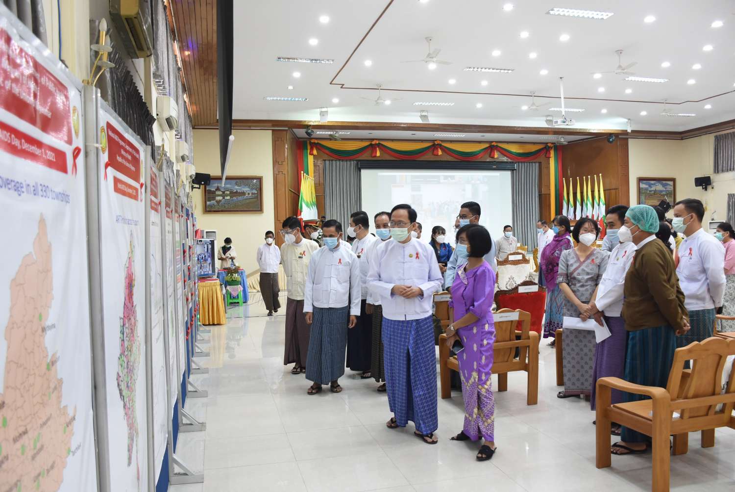 HIV/ AIDS ရောဂါတိုက်ဖျက်ရေးလုပ်ငန်းများကို ဆောင်ရွက်ရာတွင် ခုခံအားကျဆင်းမှု ကူးစက်ရောဂါဆိုင်ရာ အမျိုးသားမဟာဗျူဟာစီမံကိန်း {National Strategic Plan for HIV/AIDS (2021-2025)} နှင့်အညီ ဆောင်ရွက်လျက်ရှိပြီး မြို့နယ် (၃၃ဝ) လုံးအတွက် အခြေခံမရှိမဖြစ်လိုအပ်သော HIV/ AIDS ကာကွယ်ရေးနှင့် ကုသရေး ဝန်ဆောင်မှုလုပ်ငန်းများ (Essential packages for health services – HIV) ကို အမှန်တကယ်လိုအပ်နေသော နေရာဒေသ၊ အမှန်တကယ် လိုအပ်နေသူများအတွက် လက်လှမ်းမီရရှိနိုင်အောင် ကြိုးပမ်း ဆောင်ရွက်လျက်ရှိကြောင်း၊ အိပ်ချ်အိုင်ဗွီ/ အေအိုင်ဒီအက်စ် လူနာများကို ပြုစုကုသမှု ပေးနိုင်ရန်အတွက် (၂ဝ၂၁) ခုနှစ်တွင် မြို့နယ်(၂၇၃) မြို့နယ်တွင် အေအာတီဆေးကုဌာန (၃၆၂)ခုထိ တိုးချဲ့ဖွင့်လှစ်နိုင်ခဲ့ပြီး အေအာတီဆေးကုသမှု လုပ်ငန်းများကို ပိုမိုလက်လှမ်းမီ ရရှိစေရန် ဆောင်ရွက်ပေးနိုင်ခဲ့သလို မိခင်မှကလေးသို့ အိပ်ခ်ျအိုင်ဗွီ ကူးစက်မှုမှ ကာကွယ်ခြင်း လုပ်ငန်း (PMTCT)ကိုလည်း ယခုနှစ်တွင် မြို့နယ် (၃၃ဝ)အထိ တစ်နိုင်ငံလုံး လွှမ်းခြုံမှု ရရှိအောင် ဆောင်ရွက်နိုင်ခဲ့ပြီဖြစ်ကြောင်း၊ ကာကွယ်ရေးနှင့် ပြုစုကုသ ပေးရေးလုပ်ငန်းများကို ၂ဝ၁၁ ခုနှစ်မှစတင်ပြီး နိုင်ငံတော်အစိုးရ၏ ရန်ပုံငွေတိုးမြှင့် ထောက်ပံ့ပေးမှု များကြောင့် အရှိန်အဟုန်မြှင့် ဆောင်ရွက်နိုင်ခဲ့ပြီး နိုင်ငံတော်အစိုးရ၏ ရန်ပုံငွေ ထည့်ဝင်မှုမှာလည်း (၂ဝ၁၆-၂ဝ၁၇) ဘဏ္ဍာနှစ်မှစတင်ပြီး အေအာတီဆေးကုသရေးလုပ်ငန်း အတွက် ဆေးနှင့်ဆေးပစ္စည်း များ ပြတ်လပ်မှုမရှိစေရန်အတွက် ရန်ပုံငွေများကို နှစ်စဉ်တိုးမြှင့်ခွဲဝေချထားပေးလျက်ရှိရာ (၂ဝ၂ဝ-၂ဝ၂၁)ဘဏ္ဍာနှစ်တွင် အမေရိကန်ဒေါ်လာ (၁၅) သန်းအထိ ခွဲဝေချထားပေးခဲ့ပြီး နောင်လာမည့်နှစ်များတွင်လည်း ပိုမိုခွဲဝေချထားပေးနိုင်ရန် စီစဉ်ဆောင်ရွက်လျက်ရှိကြောင်း၊ အကျိုးရလဒ်အနေဖြင့် ခန့်မှန်း အိပ်ခ်ျအိုင်ဗွီပိုး ကူးစက်ခံရသူ ဦးရေ (၂)သိန်း (၄) သောင်း ကျော်အနက် ၂ဝ၂၁ ခုနှစ် စက်တင်ဘာလအထိ လူနာပေါင်း (၁)သိန်း (၉) သောင်းကျော် (ခန့်မှန်းအိပ်ခ်ျအိုင်ဗွီပိုး ကူးစက်ခံရသူအားလုံး၏ ၇၈ ရာခိုင်နှုန်း) ထိ ကုသမှုပေးနိုင်ခဲ့ပြ ဖြစ်ကြောင်း။