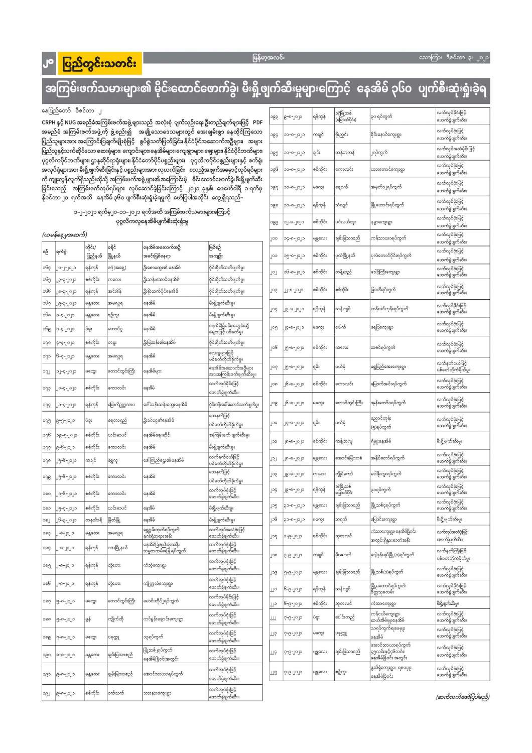 CRPH နှင့် NUG အမည်ခံအကြမ်းဖက်အဖွဲ့များသည် အလုံးစုံ ပျက်သုဉ်းရေး ဦးတည်ချက် များဖြင့် PDF အမည်ခံအကြမ်းဖက်အဖွဲ့ကို ဖွဲ့စည်း၍ အချို့သောဒေသများတွင် အေးချမ်းစွာ နေထိုင်ကြသော ပြည်သူများအား အကြောင်းပြချက်မျိုးစုံဖြင့် စွပ်စွဲသတ်ဖြတ်ခြင်း၊ နိုင်ငံပိုင် အဆောက်အဦများ၊ အများပြည်သူနှင့်သက်ဆိုင်သော ဆေးရုံများ၊ ကျောင်းများ၊ နေအိမ်များ၊ ကျေးရွာများ၊ ဈေးများ၊ နိုင်ငံပိုင်ဘဏ်များ၊ ပုဂ္ဂလိကပိုင်ဘဏ်များ၊ ဌာနဆိုင်ရာရုံးများ၊ နိုင်ငံတော်ပိုင်ပစ္စည်းများ၊ ပုဂ္ဂလိက ပိုင်ပစ္စည်းများနှင့် စက်ရုံ၊ အလုပ်ရုံများအား မီးရှို့ဖျက်ဆီး ခြင်းနှင့် ပစ္စည်းများအား လုယက်ခြင်းစသည့် အဖျက်အမှောင့်လုပ်ရပ်များကို ကျူးလွန်လျက် ရှိသည်။ ထိုသို့ အကြမ်းဖက်အဖွဲ့များ၏ အကြောင်းမဲ့ မိုင်းထောင်ဖောက်ခွဲ၊ မီးရှို့ ဖျက်ဆီးခြင်း စသည့် အကြမ်းဖက်လုပ်ရပ်များ လုပ်ဆောင်ခဲ့ခြင်းကြောင့် ၂၀၂၁ ခုနှစ်၊ ဖေဖော်ဝါရီ ၁ ရက်နေ့မှ နိုဝင်ဘာလ ၂၀ ရက်အထိ နေအိမ် ၃၆၀ လုံးတို့ ပျက်စီးဆုံးရှုံးခဲ့ရမှုကို ဖော်ပြပါအတိုင်း တွေ့ရှိရသည်-