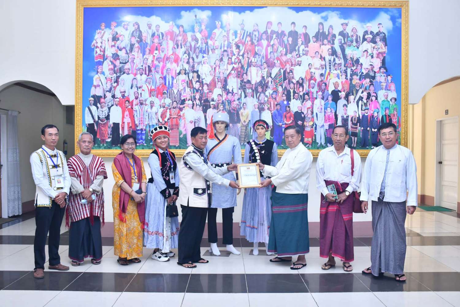 ယင်းနောက် တိုင်းရင်းသားလူမျိုးများရေးရာဝန်ကြီးဌာန ပြည်ထောင်စုဝန်ကြီးက ဂုဏ်ပြု မှတ်တမ်းလွှာများ ပြန်လည်ပေးအပ်သည်။