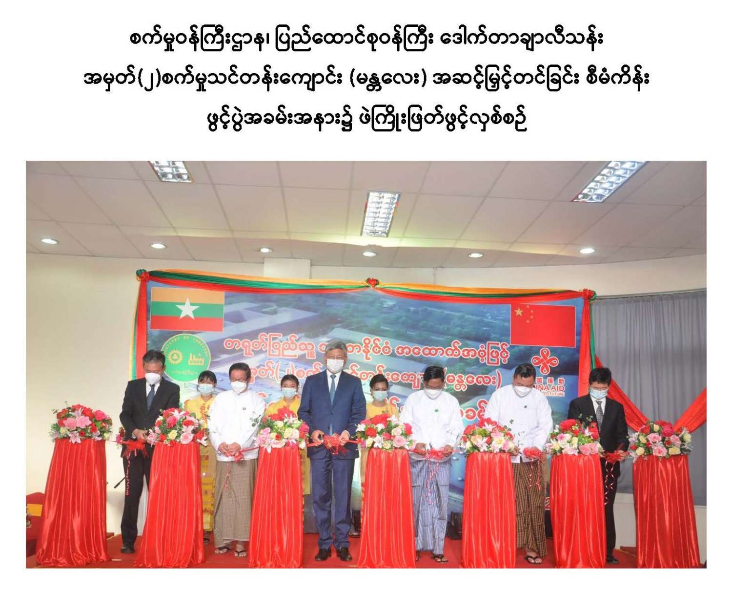 အမှတ်(၂)စက်မှုသင်တန်းကျောင်း (မန္တလေး) အဆင့်မြှင့်တင်ခြင်း စီမံကိန်းဖွင့်ပွဲ အခမ်းအနားကို ဒီဇင်ဘာ(၈)ရက် နံနက်ပိုင်းတွင် မန္တလေးတိုင်းဒေသကြီး၊ မန္တလေးမြို့ရှိ အမှတ်(၂)စက်မှုသင်တန်း ကျောင်း (မန္တလေး)၌ ကျင်းပသည်။