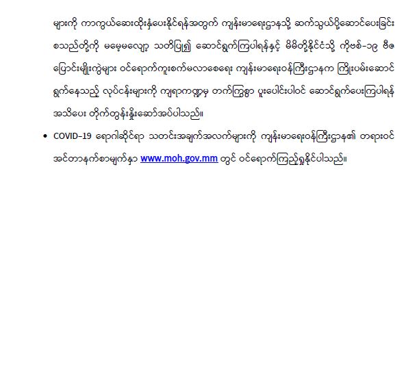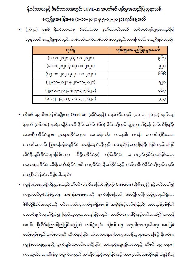 COVID-19 ရောဂါစောင့်ကြပ်ကြည့်ရှုမှုနှင့်ပတ်သက်၍ သတင်းထုတ်ပြန်ခြင်း (၁၀-၁၂-၂၀၂၁) ရက်နေ့၊ ည (၈:၀၀) နာရီ 12/10/2021