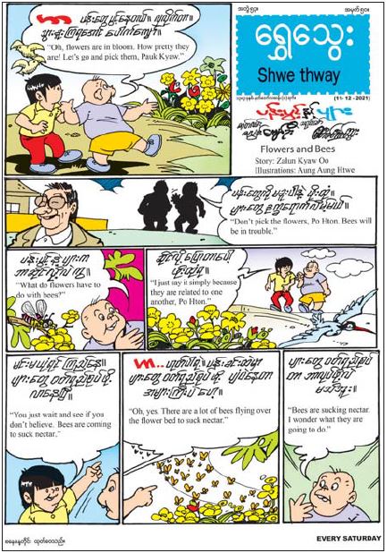 ဒီဇင်ဘာ ၁၁ ရက် (စနေနေ့)တွင် ပျားရည်များသည်လူသားတို့အတွက် တန်ဖိုးရှိကြောင်း ရေးဖွဲ့ထားသည့် “ပန်းပွင့်နှင့်ပျား” မျက်နှာဖုံးကာတွန်း၊ ကျန်းမာရေးအတွက် အထောက်အပံ့ဖြစ်စေသော ပန်းပွင့်လေးများအကြောင်း တင်ဆက်ထားသည့် “ပန်းပွင့်လေးများနှင့် ကျန်းမာရေး” သုတဆောင်းပါး၊ သူငယ်ချင်း၏ ဆုတောင်းတစ်ခုကြောင့် အပြေးပြိုင်ပွဲတွင် အနိုင်ရရှိသွားသော မောင်သင်းအကြောင်းကို ဟာသဖြစ်ဖွယ်သရုပ်ဖော်ထားသည့် “ဆုတောင်းမေ”နှစ်မျက်နှာကာတွန်း၊ ဆရာနေရောင်၏ တပည့်များနှင့်အတူ မန်ကျည်းသီးထောင်းနှင့် အရည်သောက်ဟင်းထမင်း ဝိုင်းပြင်ဆင်ရင်း တပည့်တို့အတွက် မှတ်သားလိုက်နာဖွယ်ရာ ဆုံးမစကားများပြောဆိုပုံအကြောင်း တင်ဆက်ထားသည့် “မန်ကျည်းသီးထောင်း၊ အရည်သောက်ဟင်းလေးနှင့် ဆုံးမစကား” ဝတ္ထုကဏ္ဍ၊ ကဗျာကို ကဗျာကဲ့သို့ခံစားပြီးဖတ်မှ နားလည်မည်ဖြစ်ကြောင်း ရေးဖွဲ့ထားသည့် “မြသွန်းဖြိုး” တစ်မျက်နှာကာတွန်း၊ သူတစ်ပါးမကောင်းကြောင်းအတင်းအဖျင်းပြော လိုက်ဖွတတ်သည့် ဒေါ်ဘုမအကြောင်း ရေးဖွဲ့ထားသည့် “နှုတ်မစောင့်က ပျက်စီးရ” ပုံပြင်ကဏ္ဍ အပါအဝင် ရွှေသွေးတို့လက်ရာကဏ္ဍ၊ အင်္ဂလိပ်စကား ဝိုင်းကဏ္ဍနှင့် ကဗျာကဏ္ဍစုံလင်စွာဖြင့် ထွက်ရှိပြီဖြစ်ပါသည်။