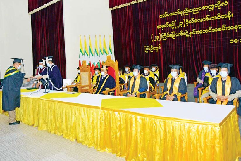 တပ်မတော်နည်းပညာတက္ကသိုလ်၏ (၂၃)ကြိမ်မြောက် ဘွဲ့နှင်းသဘင်အခမ်းအနားကို ယနေ့နေ့လယ်ပိုင်းတွင် ပြင်ဦးလွင်တပ်နယ်ရှိ တပ်မတော် နည်းပညာတက္ကသိုလ် ဘွဲ့နှင်းသဘင်ခန်းမ၌ ကျင်းပပြုလုပ်ရာ တပ်မတော်နည်းပညာတက္ကသိုလ် ကျောင်းအုပ်ကြီး ဗိုလ်မှူးချုပ် ကြည်ခိုင်၊ တပ်မတော်နည်းပညာတက္ကသိုလ် ခေတ္တပါမောက္ခချုပ် ဒုတိယဗိုလ်မှူးကြီး မြင့်ဝင်း၊ တပ်မတော်နည်းပညာတက္ကသိုလ်မှ ပညာရေးအဖွဲ့ဝင်များ တက်ရောက်ကြသည်။