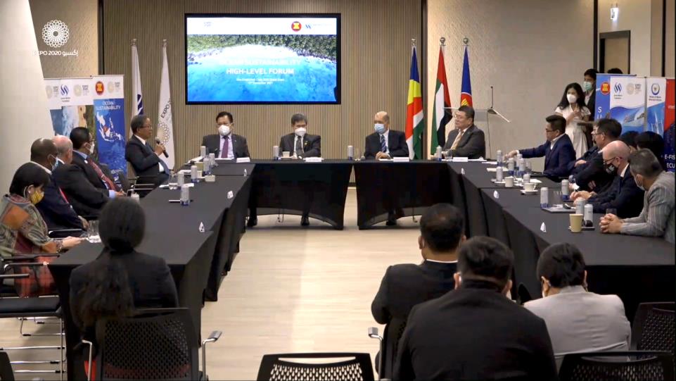 ဒူဘိုင်းကုန်စည်ပြပွဲ၏ အာဆီယံနိုင်ငံများဆိုင်ရာ သမုဒ္ဒရာရေရှည်တည်တံ့စေရေး အဆင့်မြင့်ဆွေးနွေးပွဲ (High- Level Forum) ကို ဒီဇင်ဘာ ၁၀ ရက်က United Arab Emirates (UAE) နိုင်ငံ၊ ဒူဘိုင်းမြို့ Dubai Expo 2020 (Business Connect Centre)၌ ကျင်းပသည်။