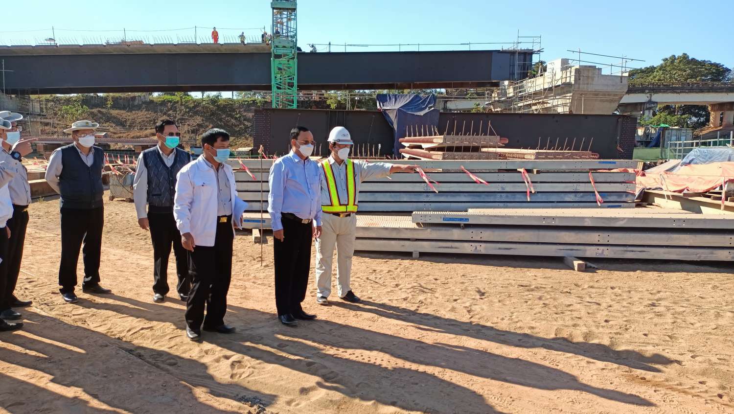 ထို့နောက် ဂျိုင်း(ကော့ကရိတ်) တံတားတည်ဆောက်ရေး လုပ်ငန်းခွင်အတွင်း တံတားတိုင် လုပ်ငန်းများ ဆောင်ရွက်ထားရှိမှု၊ တံတား ချဉ်းကပ်လမ်းများ ဆောင်ရွက်နေမှု၊ အိန္ဒု-ဇာသပြင် လမ်းအခြေအနေ၊ အသစ်တည်ဆောက်မည့် ဂျိုင်း (ဇာသပြင်) တံတားနှင့် အတရံ တံတား မြေနေရာရှင်းလင်းထားမှုနှင့် တံတားဆိုင်ရာပစ္စည်းများ စုဆောင်ထားရှိမှု အခြေအနေတို့ကို ကြည့်ရှုစစ်ဆေးသည်။