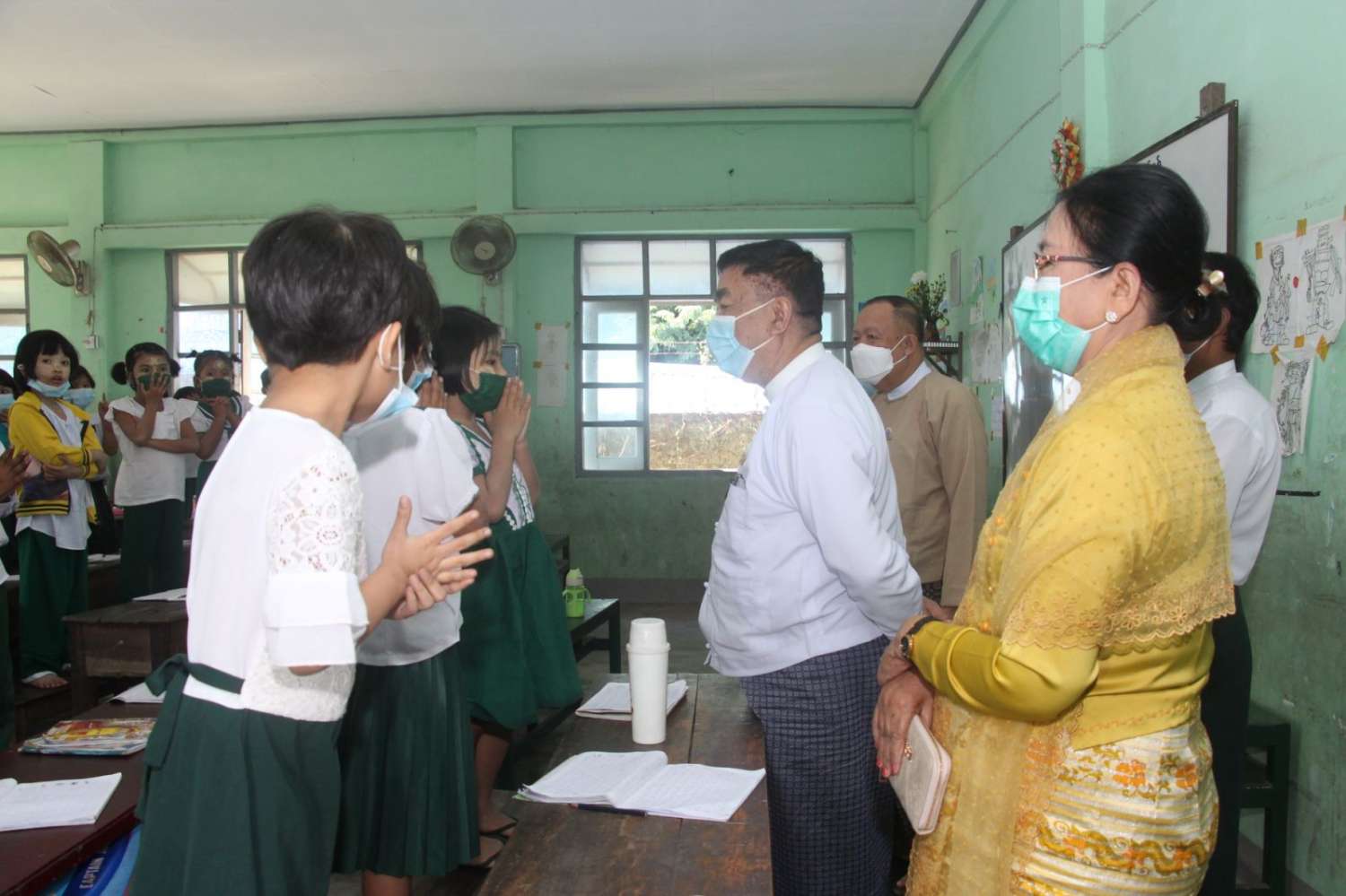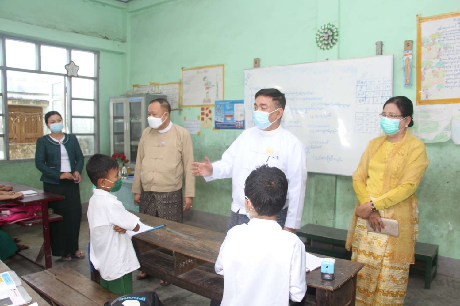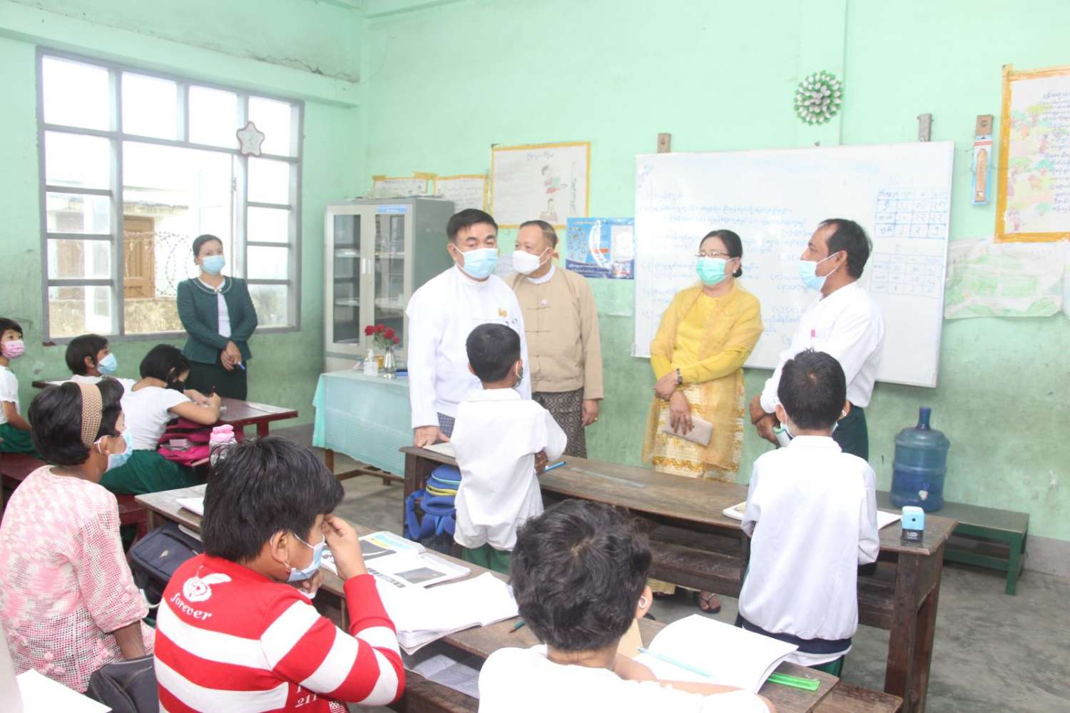 နိုင်ငံတော်စီမံအုပ်ချုပ်ရေးကောင်စီအဖွဲ့ဝင် ဒေါ်အေးနုစိန်နှင့် ပြည်ထောင်စုဝန်ကြီး ဒေါက်တာညွန့်ဖေ ရခိုင်ပြည်နယ် စစ်တွေမြို့ရှိ အခြေခံပညာကျောင်းများ လှည့်လည်ကြည့်ရှုစစ်ဆေး