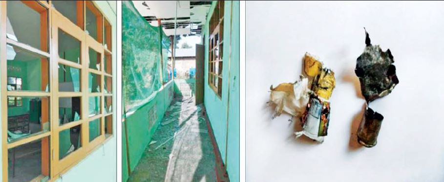 ထိုသို့ လက်လုပ်မိုင်းအသုံးပြု၍ဖောက်ခွဲဖျက်ဆီးခြင်းများ လုပ်ဆောင်လျက်ရှိရာ ဒီဇင်ဘာလ ၂၅ ရက် နံနက် နာရီခွဲခန့်တွင် မကွေးတိုင်းဒေသကြီး၊ ပေါက်မြို့၊ အောင်တော်မူရပ်ကွက်ရှိ အမှတ်()အခြေခံပညာမူလတန်းလွန်ကျောင်းအား ကျောင်းရှေ့လမ်းပေါ်မှ ဆိုင်ကယ်မောင်းနှင် လာသည့် အကြမ်းဖက်သမား ဦးက လက်လုပ်ဗုံးတစ်လုံးဖြင့် ပစ်ပေါက် ထွက်ပြေးခဲ့ရာ လက်လုပ်ဗုံးမှာ ကျောင်းဝင်းအတွင်းရှိ အလျား ၁၂၀ ပေ၊ အနံ ၃၀ ပေ သွပ်မိုး၊ အုတ်ခင်း၊ အုတ်ကာ ကျောင်းဆောင်ရှိ သတ္တမတန်းစာသင်ဆောင်ရှေ့သို့ ကျရောက်ပေါက်ကွဲခဲ့ပြီး ပေါက်ကွဲမှုကြောင့် အဆိုပါကျောင်းဆောင်၏ မျက်နှာကျက် ၁၀ ချပ်နှင့် ပြတင်းတံခါးမှန် ၂၀ ချပ်တို့ ကွဲအက်ပျက်စီးခဲ့ ကြောင်း သိရသည်။