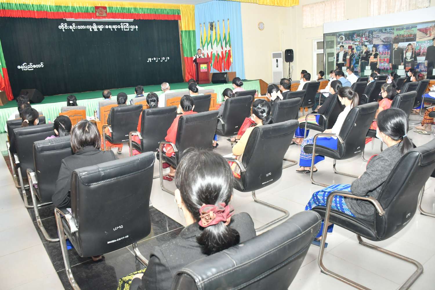 (၇၅) နှစ်မြောက် စိန်ရတု ပြည်ထောင်စုနေ့အကြို တိုင်းရင်းသားစည်းလုံး ညီညွတ်ရေးနှင့် ငြိမ်းချမ်းရေးဆိုင်ရာ အသိပညာပေး ဟောပြောပွဲ အခမ်းအနားကို ယနေ့နံနက် ၁၁ နာရီတွင် တိုင်းရင်းသားလူမျိုးများ ရေးရာဝန်ကြီးဌာန၊ အစည်းအဝေးခန်းမ၌ ကိုဗစ်-၁၉ တားဆီး ကာကွယ်ရေး၊ ကျန်းမာရေးဆိုင်ရာ ညွှန်ကြားချက်များနှင့်အညီ ကျင်းပသည်။
