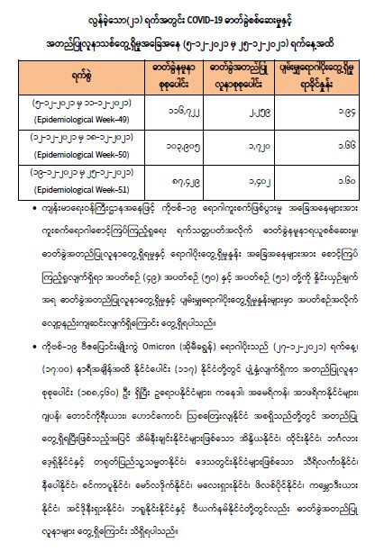 COVID-19 ရောဂါစောင့်ကြပ်ကြည့်ရှုမှုနှင့်ပတ်သက်၍ သတင်းထုတ်ပြန်ခြင်း