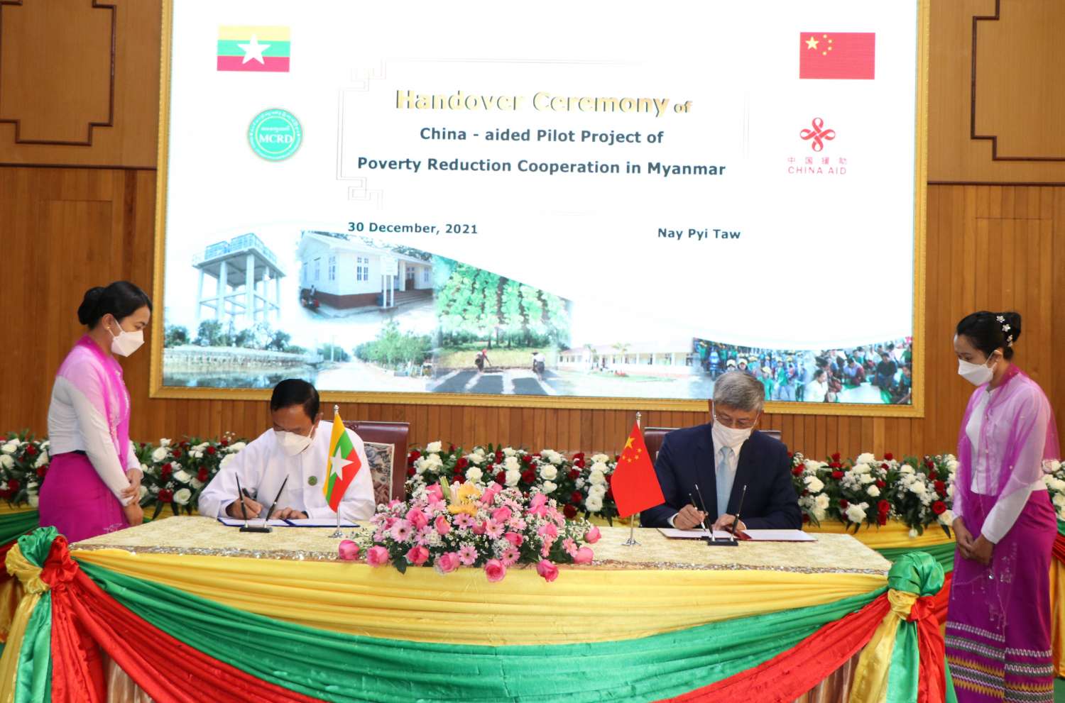 သမဝါယမနှင့်ကျေးလက်ဖွံ့ဖြိုးရေးဝန်ကြီးဌာန၊ ကျေးလက်ဒေသဖွံ့ဖြိုး တိုးတက်ရေးဦးစီးဌာနနှင့် တရုတ်ပြည်သူ့သမ္မတနိုင်ငံ National Rural Revitalization Administration (NRRA)အောက်ရှိ International Poverty Reduction Centre in China(IPRCC )တို့ပူးပေါင်း အကောင်အထည်ဖော်ဆောင်ရွက်ခဲ့သည့် “ China- aided Pilot Project of Poverty Reduction Cooperation in Myanmar” ကျေးရွာအဆင့်ဆင်းရဲမှု လျော့ချရေး စံပြစီမံကိန်း လွှဲပြောင်း ပေးအပ်ပွဲအခမ်းအနားကို ယနေ့နံနက် ၉နာရီခွဲက သမဝါယမနှင့် ကျေးလက်ဖွံ့ဖြိုးရေးဝန်ကြီးဌာန၊ ပြည်ထောင်စုဝန်ကြီးရုံး၊ အစည်းအဝေးခန်းမ၌ ကျင်းပသည်။