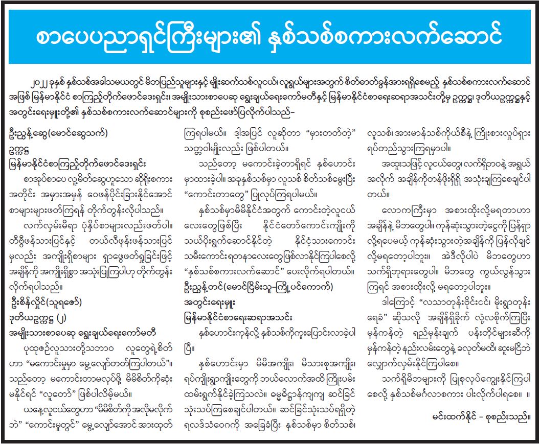 စာပေပညာရှင်များ၏ နှစ်သစ်စကားလက်ဆောင်