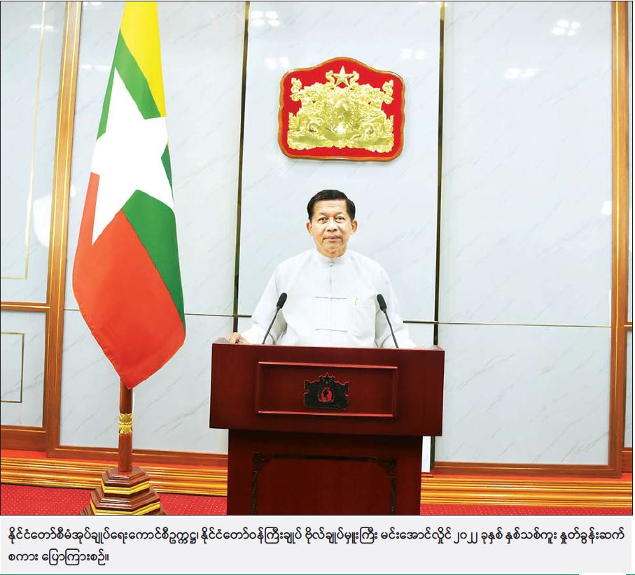 ၂၀၂၂ ခုနှစ်မှာ နိုင်ငံတော်တည်ငြိမ်အေးချမ်းရေး၊ ဖွံ့ဖြိုးတိုးတက်ရေး၊ တိုင်းပြည်စည်ပင် သာယာဝပြောရေး၊ ငြိမ်းချမ်းရေး၊ ဒီမိုကရေစီနှင့် ဖက်ဒရယ်စနစ် ကိုအခြေခံတဲ့ ပြည်ထောင်စုနိုင်ငံတော်ကြီး ပေါ်ထွန်းလာစေရေးတို့အတွက် အစိုးရအနေနဲ့ ဆက်လက်ကြိုးပမ်း ဆောင်ရွက်သွားမှာဖြစ်သလို ပြည်သူတစ်ရပ်လုံးကလည်း ပူးပေါင်း ဆောင်ရွက်ပေးကြဖို့ မေတ္တာရပ်ခံပါတယ်။