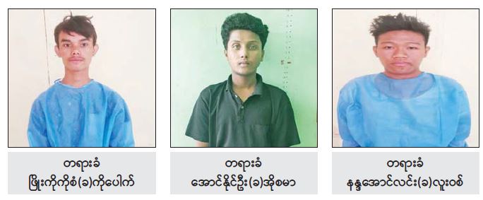 ရန်ကုန်တိုင်းဒေသကြီး၊ လှိုင်သာယာ(အရှေ့ပိုင်း)မြို့နယ်၊ ရွှေလင်ပန်းကျေးရွာနေ ယမင်းထက် (ဘ) ဦးရေလွှမ်းသည် ၂၀၂၁ ခုနှစ်၊ ဖေဖော်ဝါရီလမှစ၍ ဆူပူဆန္ဒပြမှုဖြစ်စဉ်များတွင် တတ်ကြွစွာပါဝင်လှုပ်ရှားခြင်း၊ အကြမ်းဖက်မှု တိုက်ဖျက်ရေးဗဟိုအဖွဲ့၏ အမိန့်ကြော်ငြာစာ အမှတ် (၂/၂၀၂၁) ဖြင့် အကြမ်းဖက်အုပ်စုများအဖြစ် သတ်မှတ်ကြေငြာထားသည့် အဖွဲ့အစည်းများနှင့် ဆက်သွယ်ခြင်း၊ ငွေကြေးကောက်ခံ ထောက်ပံ့ခြင်းများကို လုပ်ဆောင်ခဲ့သည့် အတွက်ကြောင့်လည်းကောင်း၊ လှိုင်သာယာ(အရှေ့ပိုင်း)မြို့နယ်၊ အမှတ်(၆)ရပ်ကွက်နေ အောင်နိုင်ဦး(ခ)အိုစမာ(ဘ)ဦးအလီကာ သည် ဖေဖော်ဝါရီလမှစ၍ ဆူပူဆန္ဒပြမှု ဖြစ်စဉ်များတွင် တတ်ကြွစွာပါဝင်လှုပ်ရှားခြင်း၊ တိုင်းရင်းသားလက်နက်ကိုင်အဖွဲ့ နယ်မြေအတွင်း လက်နက်နှင့် ဖောက်ခွဲဖျက်ဆီးရေး သင်တန်းတက်ရောက်ခဲ့ခြင်း၊ ရန်ကုန်တိုင်းဒေသကြီးအတွင်း အကြမ်းဖက် တိုက်ခိုက်မှုများတွင် ပါဝင်လုပ်ဆောင်ခဲ့သည့် အတွက်ကြောင့်လည်းကောင်း၊ လှိုင်သာယာ (အနောက်ပိုင်း) မြို့နယ်၊ အမှတ် (၂၀) ရပ်ကွက်နေ မျိုးမြင့်သန်း (ခ) အသေးလေး (ခ) လင်းယုန် (ဘ) ဦးသောင်းညွန့်သည် PDF အမည်ခံအကြမ်းဖက်အဖွဲ့ ဆက်ကြေးတာဝန်ခံအဖြစ် လုပ်ကိုင်ခဲ့ခြင်း၊ လက်နက်/ခဲယမ်းများ ရောင်းဝယ်ခြင်း၊ လက်ဝယ်ကိုင်ဆောင်ခြင်းနှင့် ဖောက်ခွဲ ဖျက်ဆီးရေးလုပ်ငန်းများ လုပ်ဆောင်ခဲ့သည့်အတွက်ကြောင့်လည်းကောင်း။