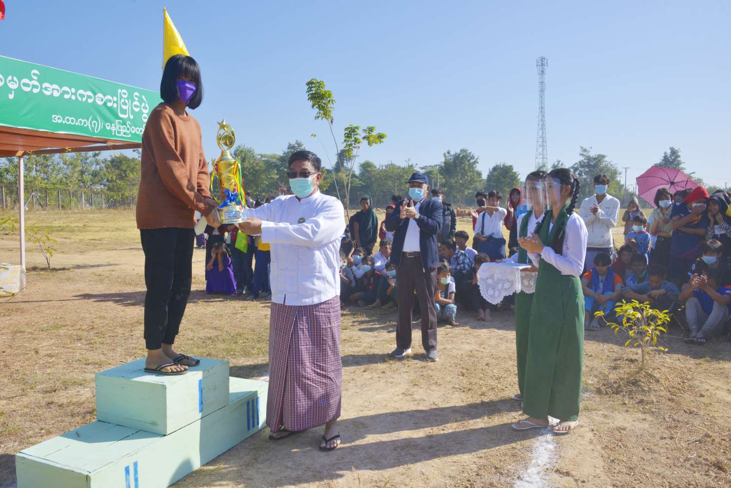 ဆုပေးပွဲအခမ်းအနားတွင် ဒုတိယဝန်ကြီး ဦးမင်းမင်းဦး က အထက်တန်းအဆင့် ထုပ်ဆီးတိုးပြိုင်ပွဲ ပထမ၊ ဒုတိယ၊ တတိယ ဆုရရှိသူများအားလည်းကောင်း၊ အမြဲတမ်း အတွင်းဝန်က Grade-3 ကျား မီတာ(၅၀)အပြေးပြိုင်ပွဲ ဆုရရှိသူများကိုလည်းကောင်း၊ ဒုတိယအတွင်းဝန်များ၊ သက်ဆိုင်ရာ ဦးစီးဌာနများမှ ညွှန်ကြားရေးမှူးချုပ်၊ ဦးဆောင် ညွှန်ကြားရေးမှူးများ၊ ဒုတိယညွှန်ကြားရေးမှူးချုပ်များနှင့် အမှတ် (၇)အခြေခံပညာ အထက်တန်းကျောင်းမှ ကျောင်းအုပ်ကြီးနှင့် ဆရာ ဆရာမများက ဆုများအသီးသီး ချီးမြှင့်ခဲ့ကြပြီး အားကစားပွဲသို့ ကျောင်းသား ကျောင်းသူများနှင့် မိသားစုဝင်များ၊ ဝန်ထမ်းများ လာရောက်အားပေးခဲ့ပြီး ပျော်ရွှင်စွာဆင်နွှဲခဲ့ကြကြောင်း သိရသည်။