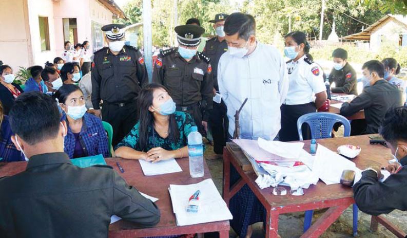 ရှေးဦးစွာ လူဝင်မှုကြီးကြပ်ရေးနှင့် ပြည်သူ့အင်အားဝန်ကြီးဌာန ဒုတိယဝန်ကြီး ဦးဌေးလှိုင်နှင့် တာဝန်ရှိသူများက ရပ်ကွက်နေ ပြည်သူများ၊ ကျောင်းသား ကျောင်းသူများအား ရင်းရင်းနှီးနှီး နှုတ်ဆက်ပြီး ပန်းခင်းစီမံချက်ဖြင့် ဆောင်ရွက်နေမှုများကို ကြည့်ရှုပြီး (အပေါ်ပုံ) ဆောင်ရွက်ပြီးစီး သော အိမ်ထောင်စု လူဦးရေစာရင်းနှင့် နိုင်ငံသားစိစစ်ရေးကတ်ပြားကို ဒုတိယဝန်ကြီး ဦးဌေးလှိုင်၊ အမျိုးသားမှတ်ပုံတင်နှင့် နိုင်ငံသားဦးစီးဌာန ညွှန်ကြားရေးမှူးချုပ် ဦးထိန်ဝင်း၊ ဇမ္ဗူသီရိမြို့နယ် စီမံအုပ်ချုပ်ရေးအဖွဲ့ ဥက္ကဋ္ဌ ဦးနေမျိုးထွန်းတို့က ရပ်ကွက်နေ ပြည်သူများနှင့် ကျောင်းသား ကျောင်းသူများအား ပေးအပ်ရာ နိုင်ငံသားစိစစ်ရေး ကတ်ပြားရရှိသူများ၏ ကိုယ်စား ပြည်သူတစ်ဦး က ကျေးဇူးတင်စကား ပြောကြားသည်။