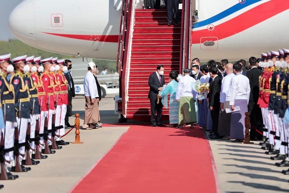 နိုင်ငံတော်စီမံအုပ်ချုပ်ရေးကောင်စီဥက္ကဋ္ဌ နိုင်ငံတော်ဝန်ကြီးချုပ် ဗိုလ်ချုပ်မှူးကြီး မင်းအောင်လှိုင်၏ ဖိတ်ကြားချက်အရ ကမ္ဘောဒီးယားနိုင်ငံဝန်ကြီးချုပ် Samdech Akka Moha Sena Padei Techo HUN SEN သည် အလုပ်သဘောခရီးစဉ်အဖြစ် ယနေ့နံနက်ပိုင်းတွင် နေပြည်တော်သို့ ရောက်ရှိသည်။