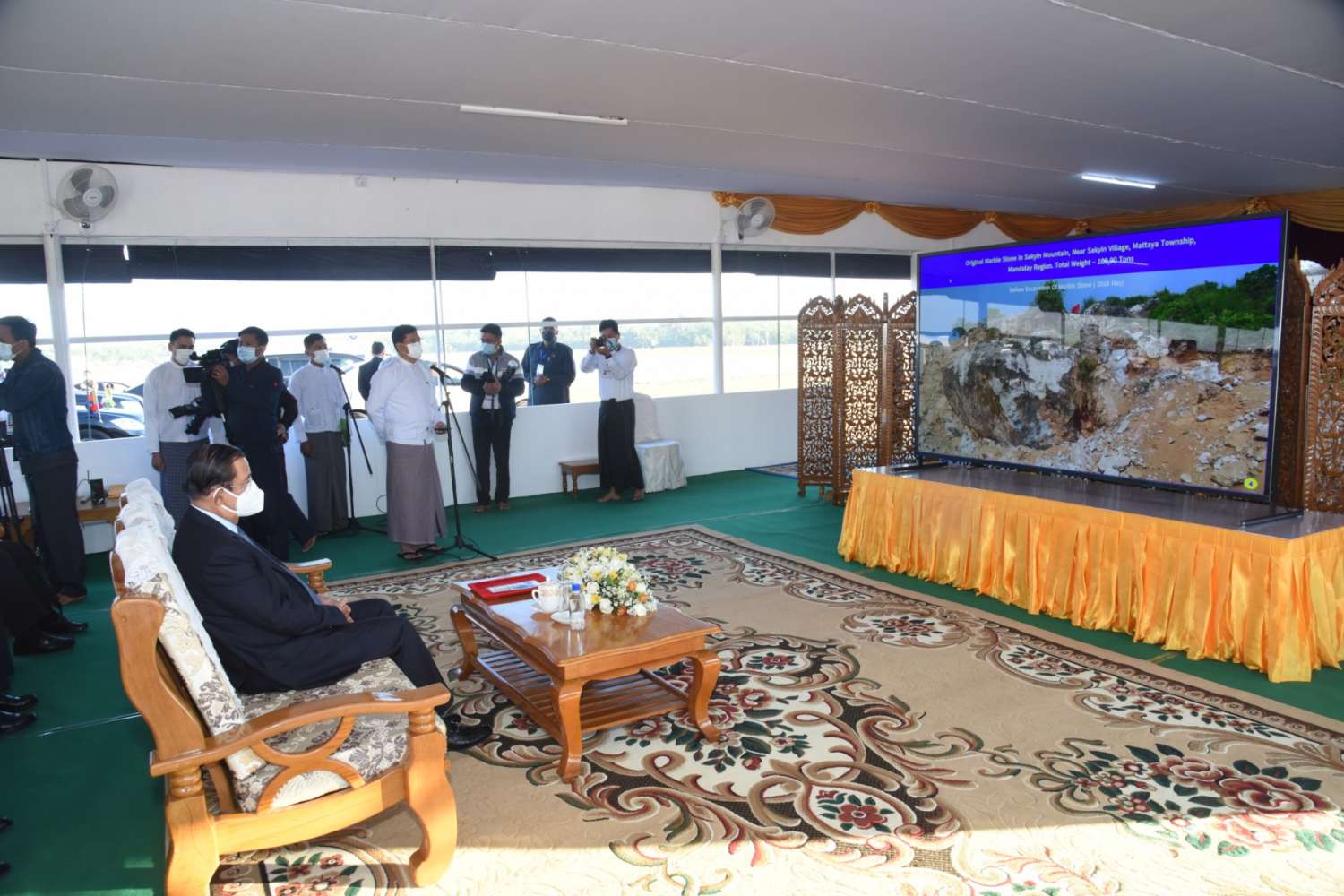 ထို့နောက် ကမ္ဘောဒီးယားနိုင်ငံဝန်ကြီးချုပ်နှင့် ကိုယ်စားလှယ်အဖွဲ့ဝင်များသည် မာရဝိဇယ ကျောက်ဆစ်ဗုဒ္ဓ ရုပ်ပွားတော်မြတ်ကြီး တည်ထားကိုးကွယ်မည့် ပုံစံအတိုင်း ပြုလုပ်ပုံ ဖော်ထားသည့် ဥယျာဉ်တော်အကွက်ချပုံစံငယ်များ၊ ရုပ်ပွားတော်ကြီးပုံစံ ငယ်များ၊ ပိဋကတ်ကျောက်စာရုံနှင့် ကျောက်စာနမူနာများ၊ ရုပ်ပွားတော်မြတ်ကြီး၏ ပလ္လင်တော်များ နေရာချထားမှုနှင့် CNC Machine များဖြင့် ထုဆစ်နေမှု အခြေအနေ များအား မော်တော်ယာဉ်များဖြင့် လှည့်လည်ကြည့်ရှုခဲ့ကြောင်းသတင်းရရှိသည်။