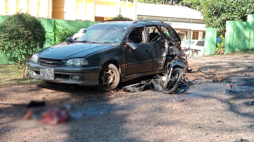 ယနေ့ ၁၄:၁၅ ချိန်ခန့်တွင် ဘားအံမြို့၊ အမှတ်(၄)ရပ်ကွက်၊ သံလွင်လမ်း၊ ပြည်နယ်စည်ပင်ရုံးသို့ အမည်မသိအမျိုးသားနှစ်ဦးမှ ဆိုင်ကယ်ဖြင့် မိုင်းထောင်ရန်လာရောက်စဉ် ပြည်နယ်စည်ပင် ရုံးရှေ့၌ ရပ်နားထားသည့် ကယ်ရီနား၊ အနက်ရောင်ယဉ်၏ နောက်ပိုင်းအရောက်တွင် ၎င်းတို့ သယ်ဆောင်လာသည့် မိုင်းပေါက်ကွဲခဲ့သဖြင့် လာရောက်မိုင်းထောင်သူများမှာ ခန္ဓာကိုယ် အစိတ်အပိုင်းများ တစ်စစီဖြင့် သေဆုံးခဲ့ကြောင်း၊ ထို့အပြင် ၎င်းတို့ စီးနင်းလာသည့် ဆိုင်ကယ်နှင့် ရုံးရှေ့တွင်ရပ်နားထားသည့် ကားနောက်ပိုင်းနှင့် ရှေ့မှန်ပျက်စီးမှုများ ဖြစ်ပွားခဲ့ကြောင်း၊ ဖြစ်စဉ်ဖြစ်ပွားရာ နေရာသို့ တာဝန်ရှိသူများ သွားရောက်ကြည့်ရှု စစ်ဆေးခဲ့ကြောင်း သတင်းရရှိသည်။