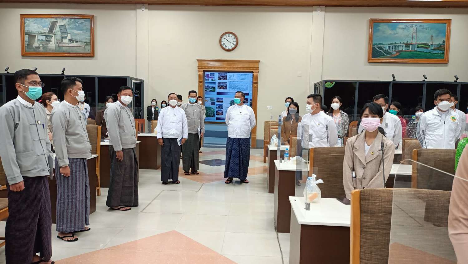 ဝန်ထမ်းများ၏ စွမ်းဆောင်ရည်မြင့်မားရေးနှင့် လုပ်ငန်းခွင်ကျွမ်းကျင်မှုရှိစေရန် ရည်ရွယ်၍ ဆောက်လုပ်ရေးဝန်ကြီးဌာန၊ အဆောက်အဦ၊ လမ်း၊ တံတား၊ မြို့ပြနှင့် အိမ်ရာဖွံ့ဖြိုးရေးဦးစီးဌာနနှင့် ကျေးလက်လမ်းဖွံ့ဖြိုးရေးဦးစီးဌာနတို့မှ ဝန်ထမ်းသစ်များ၏ လုပ်ငန်းခွင်ဝင် သင်တန်းအမှတ်စဉ် (၁/၂၀၂၂) ဖွင့်ပွဲအခမ်းအနားကို ယနေ့နံနက်(၁၀) နာရီတွင် နေပြည်တော်ဆောက်လုပ်ရေးဝန်ကြီးဌာန စုဝေးခန်းမ ဆောင်၌ကိုဗစ်-၁၉ ညွှန်ကြားချက်များနှင့်အညီ ကျင်းပသည်။
