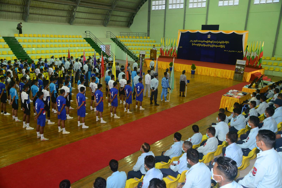 ၂၀၂၂ ခုနှစ်၊ ကာကွယ်ရေးဦးစီးချုပ်(လေ) တံခွန်စိုက်ဒိုင်း ပိုက်ကျော်ခြင်းနှင့် ရိုးရာဝိုင်းဖွဲ့ ခြင်းလုံးပြိုင်ပွဲ ဖွင့်ပွဲကို ယနေ့နံနက်ပိုင်းတွင် မှော်ဘီလေတပ်စခန်း မိုးလုံလေလုံ အားကစားခန်းမ၌ ကျင်းပပြုလုပ်ရာ တပ်မတော်(လေ)မှ အရာရှိကြီးများ၊ အရာရှိ၊ စစ်သည်၊ မိသားစုများ၊ မြန်မာနိုင်ငံခြင်းလုံးအဖွဲ့ချုပ်မှ တာဝန်ရှိသူများ၊ ပြိုင်ပွဲဝင်အားကစားသမားများနှင့် အားကစားဝါသနာရှင်များ တက်ရောက်ကြပြီး ကာကွယ်ရေး ဦးစီးချုပ်(လေ) ကိုယ်စား ဗိုလ်ချုပ်လှညွှန့်က အဖွင့်အမှာစကား ပြောကြားသည်။
