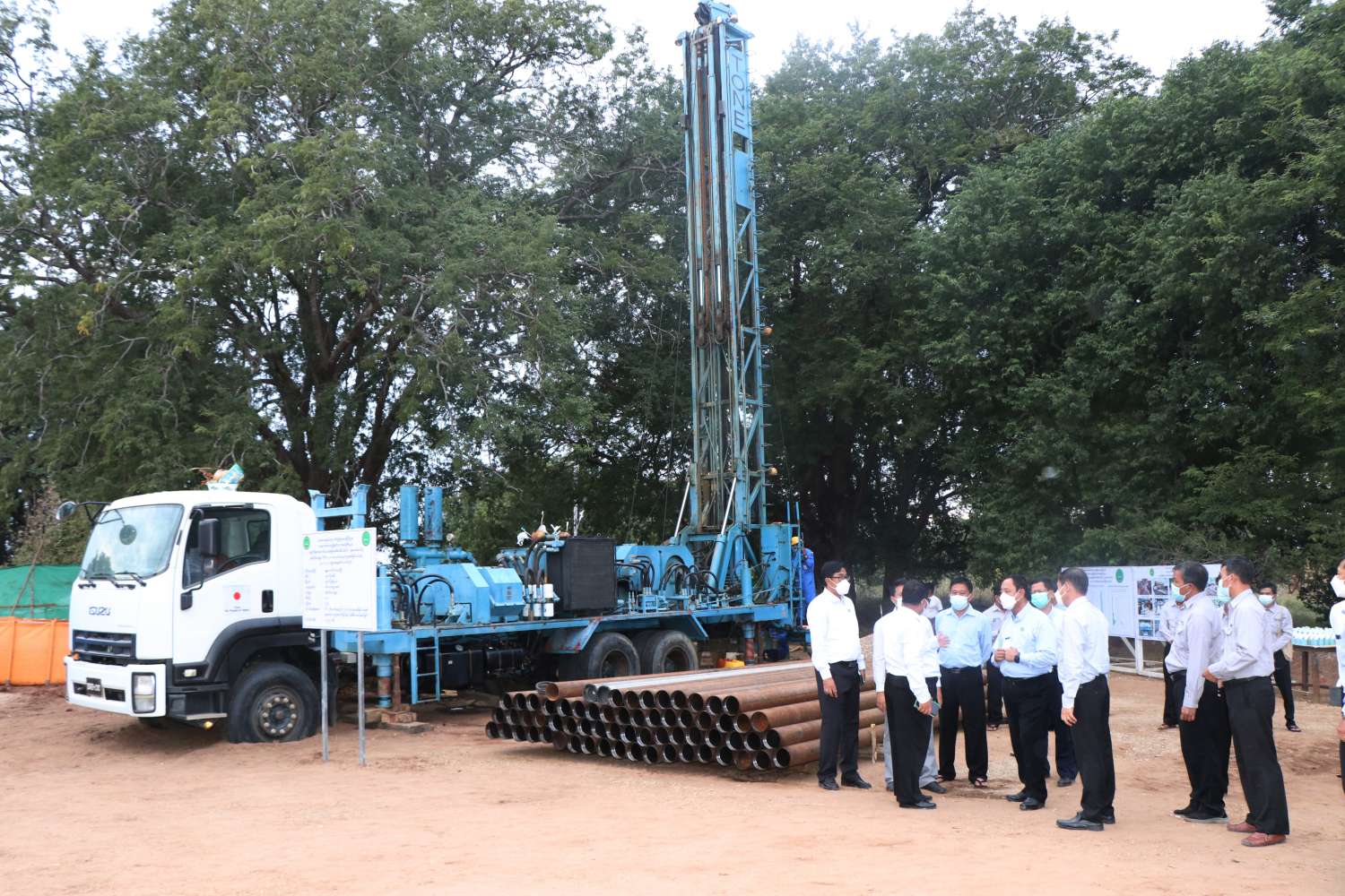 ထို့နောက် ပြည်ထောင်စုဝန်ကြီးနှင့်အဖွဲ့သည် ကျေးလက်ဒေသဖွံ့ဖြိုးတိုးတက်ရေးဦးစီးဌာနမှ အပူပိုင်းဇုံကျေးလက် ဒေသရေရှိရေးစီမံကိန်းဖြင့် ညောင်ဦးမြို့နယ် ထီးပုကျေးရွာ အုပ်စု၊ ဂျမ်းလှီးကျေးရွာ၌ အိမ်ခြေ ၁၀၄၊ လူဦးရေ ၅၂၅ ဦးတို့အတွက် သောက်သုံးရေဖူလုံစွာရရှိရေး အကျယ် ခြောက်လက်မ၊ အနက်ပေ ၁၂၀၀ ရှိ တွင်းနက်စက်ရေတွင်း တူးဖော်ခြင်း လုပ်ငန်းနှင့် ဆက်စပ်လုပ်ငန်းများ ဆောင်ရွက်နေမှုကို ကြည့်ရှုစစ်ဆေးပြီး သတ်မှတ်စံချိန်စံညွှန်းများ နှင့်အညီ အချိန်မီပြီးစီးရေး တာဝန်ရှိသူအဆင့်ဆင့်မှ ကြီးကြပ်ဆောင်ရွက်သွားရန်၊ အိမ်သွယ်ရေတိုင် ရေမီတာ စနစ်ဖြင့် ရေလေလွင့်မှုနည်းပြီး ရေစီမံခန့်ခွဲကောင်းခြင်းဆိုင်ရာ ရေပေးရေးကော်မတီများကို လိုအပ်သည့် သင်တန်းများ ပေးခြင်း၊ စည်းရုံးဆောင်ရွက်သွားရန် မှာကြားခဲ့ကြောင်း သိရသည်။