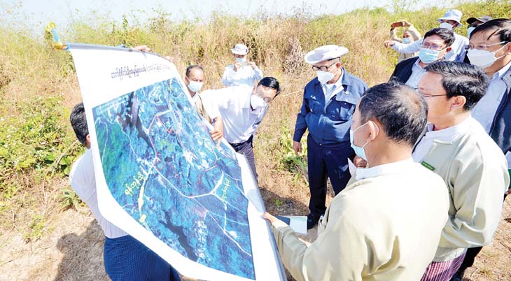 စိုက်ပျိုးရေး၊ မွေးမြူရေးနှင့်ဆည်မြောင်းဝန်ကြီးဌာန ဒုတိယဝန်ကြီး ဒေါက်တာအောင်ကြီးသည် ဇန်နဝါရီ ၃၁ ရက်က အလိုင်နီရေလှောင်တမံကို ကြည့်ရှုစစ်ဆေးသည်။