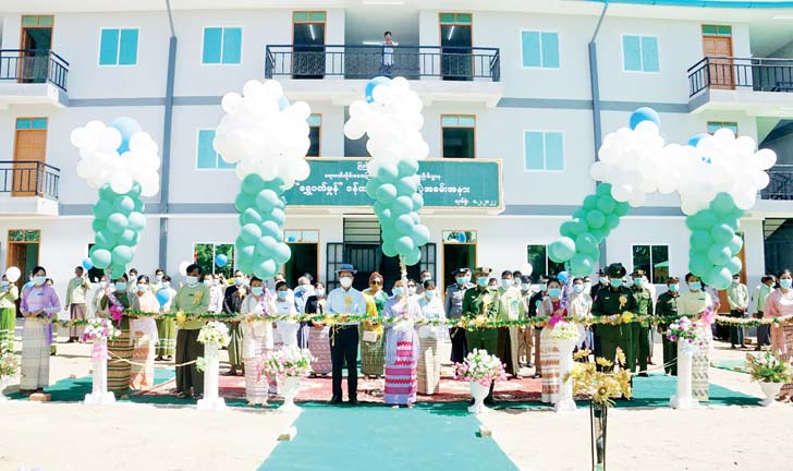 ဦးစွာ တိုင်းဒေသကြီးဝန်ကြီးချုပ်၊ တိုင်းမှူးနှင့် တာဝန်ရှိသူများက အဆောက်အအုံသစ်ကို ဖဲကြိုးဖြတ်ဖွင့်လှစ်ပေးပြီး အဆောက်အအုံသစ် ကမ္ပည်းမော်ကွန်းအား အမွှေးနံ့သာရည်များ ပက်ဖျန်းကာ အဆောက်အအုံသစ်အား လိုက်လံကြည့်ရှုကြသည်။