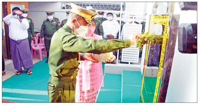 ဦးစွာ တိုင်းမှူးနှင့် တာဝန်ရှိသူများက ဘဏ်ခွဲကမ္ပည်းမော်ကွန်းအား အမွှေးနံ့သာရည်များ ပက်ဖျန်း၍ ဖွင့်လှစ်ပေးသည်။