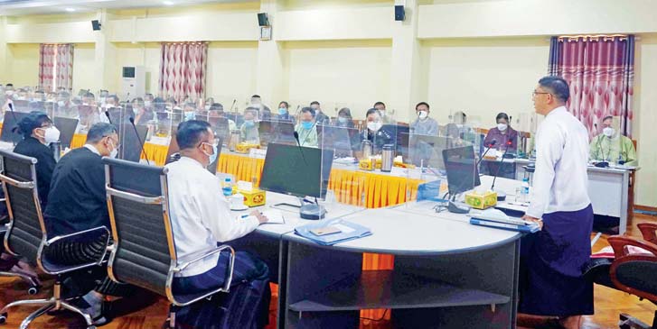 ဆက်လက်၍ တက်ရောက်လာကြသည့် ပြည်နယ်အဆင့်ဌာန ဆိုင်ရာများမှ တာဝန်ရှိသူများက မိမိဌာနအလိုက် လုပ်ငန်းဆောင်ရွက်နေမှု အခြေအနေများနှင့် တွေ့ကြုံနေရသည့် အခက်အခဲ များကို တင်ပြခဲ့ပြီး ပြည်နယ် အစိုးရအဖွဲ့ဝင်များက ဖြည့်စွက် ဆွေးနွေးသည်။