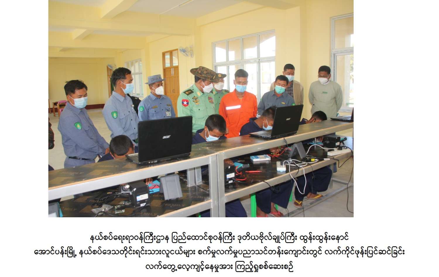 ပြည်ထောင်စုဝန်ကြီးနှင့်အဖွဲ့သည် ဖေဖော်ဝါရီ ၇ ရက် မွန်းလွဲပိုင်းတွင် အောင်ပန်းမြို့ရှိ နယ်စပ်ဒေသ တိုင်းရင်းသားလူငယ်များ စက်မှုလက်မှုပညာ သင်တန်းကျောင်းသို့ ရောက်ရှိ၍ သင်တန်းကျောင်းအုပ်၏ သင်တန်းကျောင်းဆိုင်ရာ တင်ပြချက်များအပေါ် လိုအပ်သည်များ ဖြည့်ဆည်းဆောင်ရွက်ပေးပြီး နည်းပြများနှင့် သင်တန်းသားများကို အမှာစကား ပြောကြားကာ ရင်းနှီးစွာနှုတ်ဆက်သည်။ ဆက်လက်၍ သင်တန်းခန်းမဆောင်များ၌ ဘာသာရပ် အလိုက် လက်တွေ့လေ့ကျင့်သင်ကြားနေမှုများနှင့် အိပ်ဆောင်၊ စားရိပ်သာများကို လိုက်လံကြည့်ရှု စစ်ဆေးကာ ထပ်မံဖြည့်စွက်သင်ကြားပေးရန် လိုအပ်ချက်များနှင့် အဆင့်မြင့် စက်မှုလက်မှုပညာ သင်တန်းများ ဖွင့်လှစ်သင်ကြားနိုင်ရေး ကိစ္စရပ်များကို မှာကြားခဲ့ကြောင်း သိရသည်။