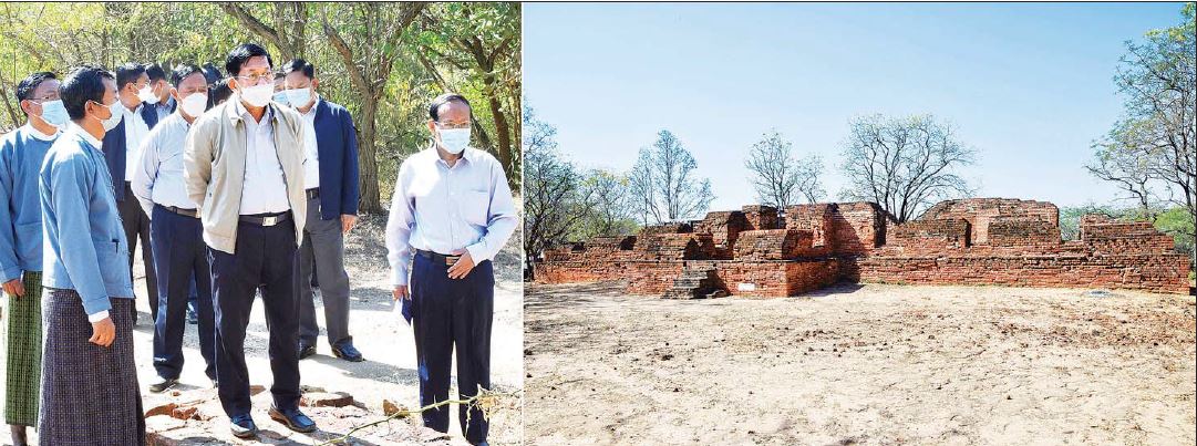 ဆက်လက်ပြီး နိုင်ငံတော်စီမံအုပ်ချုပ်ရေးကောင်စီဥက္ကဋ္ဌ၊ နိုင်ငံတော်ဝန်ကြီးချုပ်၊ ဇနီးနှင့် အဖွဲ့ဝင်များသည် ကမ္ဘာ့အမွေအနှစ်စာရင်းဝင် ဗိဿနိုးမြို့ဟောင်းအတွင်းရှိ KKG-2 ဘုန်းကြီး ကျောင်းပန္နက်ပုံရှိ အဆောက်အဦ၊ KKG-3 စေတီပန္နက်ပုံရှိ အဆောက်အဦ၊ KKG-4 ဘာသာရေးဆိုင်ရာ အထိမ်းအမှတ်အဆောက်အဦ၊ BTO- 1၊ BTO- 2၊ BTO- 3၊ BTO- 4၊ BTO- 5 နန်းတော်ရာ အတွင်း၊ အပြင် အုတ်ရိုးများကို ကြည့်ရှုလေ့လာခဲ့ပြီး မြို့ဟောင်းအတွင်းရှိ ရှေးဟောင်းအဆောက်အဦများကို တစ်နေရာနှင့် တစ်နေရာ မြင်နိုင်ရန်၊ လျှောက်လမ်းများ၊ လမ်းညွှန်ဆိုင်းဘုတ်များကို စနစ်တကျ ပြုလုပ်ထားရှိရန်နှင့် စနစ်တကျထိန်းသိမ်းဆောင်ရွက်ရန် လိုအပ်သည့် အခြေအနေများနှင့် ပတ်သက်၍ လိုအပ်သည်များကို ဆွေးနွေးမှာကြားခဲ့သည်။