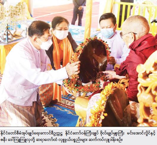 ထို့နောက် နိုင်ငံတော်စီမံအုပ်ချုပ်ရေးကောင်စီဥက္ကဋ္ဌ နိုင်ငံတော်ဝန်ကြီးချုပ်၊ ဇနီးနှင့် မိသားစုဝင်များက ရတနာစိန်ဖူးတော်၊ ငှက်မြတ်နားတော်၊ ရွှေထီးတော်နှင့် လှူဖွယ် ပစ္စည်းများအား နိုင်ငံတော် ဩဝါဒါစရိယ၊ စလင်းဆရာတော်ကြီးထံ ဆက်ကပ်လှူဒါန်းကြသည်။ ဆက်လက်ပြီး နိုင်ငံတော်စီမံအုပ်ချုပ်ရေး ကောင်စီဝင်များ၊ တွဲဖက်အတွင်း ရေးမှူးနှင့် ပြည်ထောင်စုဝန်ကြီးများက လှူဖွယ်ပစ္စည်းများအား သံဃာတော် အရှင်သူမြတ်များထံ ဆက်ကပ်လှူဒါန်းကြသည်။