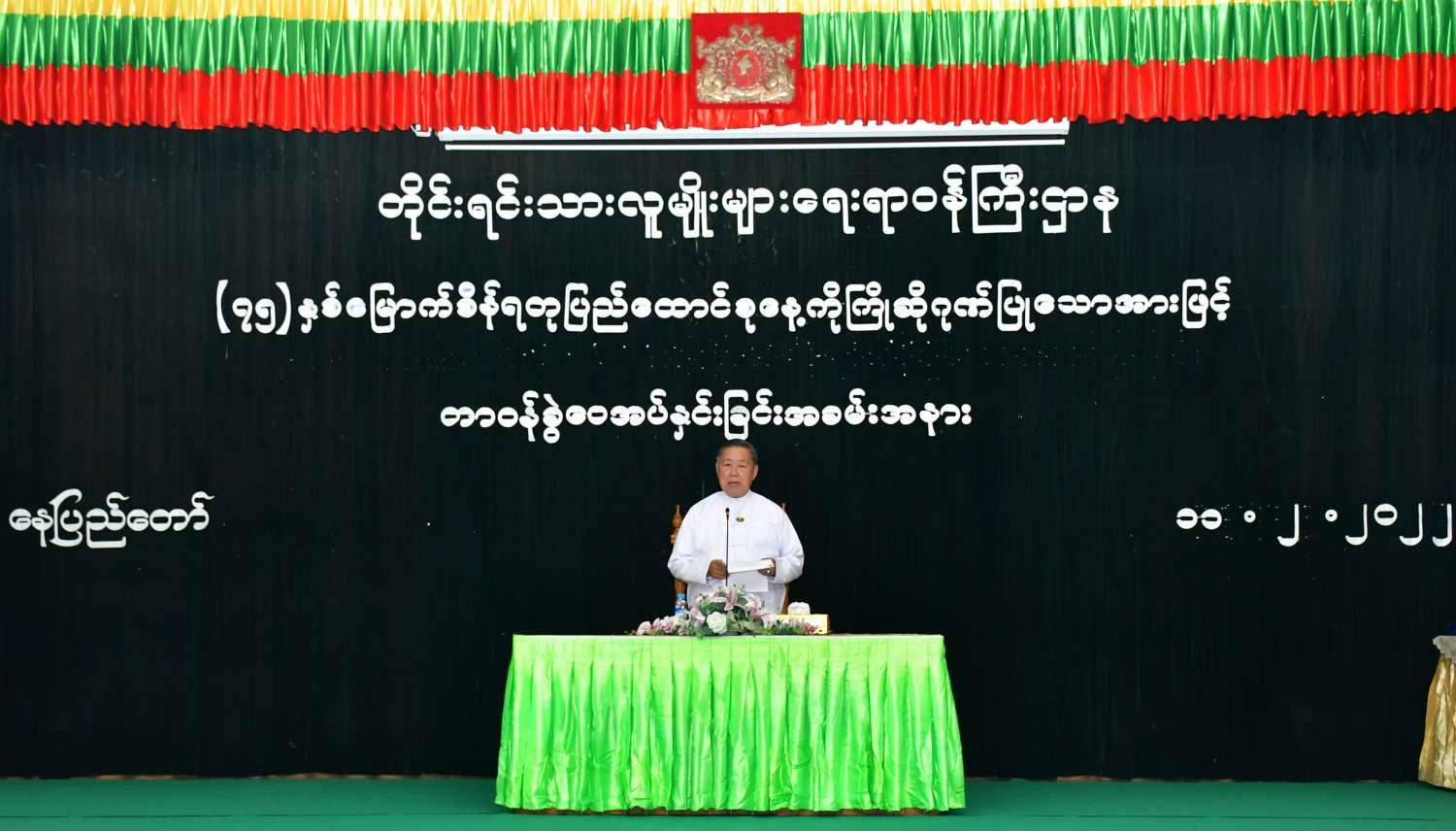 ပထမဦးစွာ ပြည်ထောင်စုဝန်ကြီး က ယခုကဲ့သို့ တာဝန်ခွဲဝေအပ်နှင်းခြင်းဖြင့် တိုင်းဒေသကြီး/ ပြည်နယ်များတွင် တိုင်းရင်းသားရေးရာကိစ္စရပ်များ၊ တိုင်းရင်းသားများ၏ လူမှုစီးပွားဘဝ ဖွံ့ဖြိုး တိုးတက်ရေးလုပ်ငန်းများ ပိုမိုဆောင်ရွက်လာနိုင်ပြီး တိုင်းရင်းသားအချင်းချင်း သို့မဟုတ် တိုင်းရင်းသားလူမျိုးများအကြား ဖြစ်ပွားသည့် အငြင်းပွားမှုများကိုလည်း စနစ်တကျဖြေရှင်း ဆောင်ရွက်လာနိုင်မည်ဟု ယုံကြည်ပါကြောင်း၊ တိုင်းဒေသကြီး/ ပြည်နယ် တိုင်းရင်းသားရေးရာ ဝန်ကြီးများနှင့်အတူ (၇၅)နှစ်မြောက် စိန်ရတု ပြည်ထောင်စုနေ့ ကျင်းပပြီးမြောက်သည်အထိ အတူတကွ ပူးပေါင်းဆောင်ရွက်ခွင့်ရသည့်အတွက်လည်း များစွာဂုဏ်ယူမိပါကြောင်း၊ တိုင်းရင်းသားလူမျိုးများအားလုံး စည်းလုံးညီညွတ်ပြီး ပိုမိုကောင်းမွန်သည့် အနာဂတ်ရရှိရေး၊ ပြည်ထောင်စုစိတ်ဓာတ်ကို အခြေခံ၍ မိမိတို့၏ တိုင်းပြည်နှင့် တိုင်းရင်းသားလူမျိုးများအားလုံး ဘက်စုံဖွံ့ဖြိုးတိုးတက်ရေးအတွက် ကြိုးပမ်းဆောင်ရွက်ပေးကြစေလိုပါကြောင်း ပြောကြားသည်။