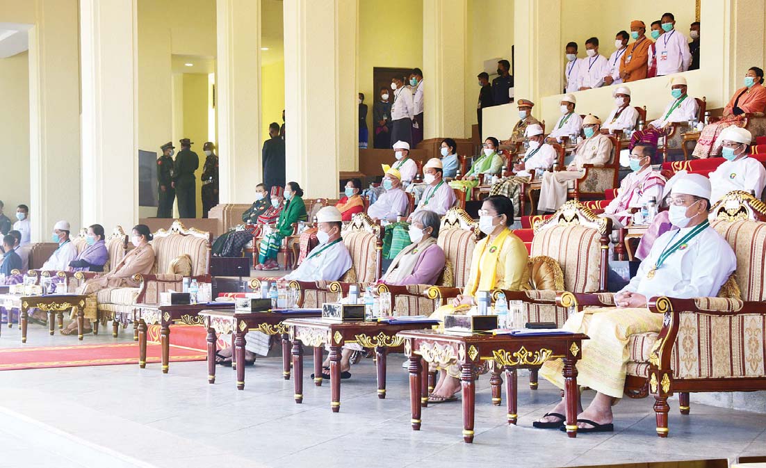 အဆိုပါအခမ်းအနားသို့ နိုင်ငံတော် စီမံအုပ်ချုပ်ရေးကောင်စီဥက္ကဋ္ဌ နိုင်ငံတော် ဝန်ကြီးချုပ် ဗိုလ်ချုပ်မှူးကြီး မဟာသရေစည်သူ မင်းအောင်လှိုင်၏ဇနီး ဒေါ်ကြူကြူလှ၊ နိုင်ငံတော် စီမံအုပ်ချုပ်ရေးကောင်စီ ဒုတိယဥက္ကဋ္ဌ ဒုတိယဝန်ကြီးချုပ် ဒုတိယဗိုလ်ချုပ်မှူးကြီး သရေစည်သူ စိုးဝင်းနှင့်ဇနီး ဒေါ်သန်းသန်းနွယ်၊ ကောင်စီအဖွဲ့ဝင်များ ဖြစ်ကြသည့် ဗိုလ်ချုပ်ကြီးမြထွန်းဦး၊ ဗိုလ်ချုပ်ကြီးတင်အောင်စန်း၊ ဒုတိယဗိုလ်ချုပ်ကြီး မိုးမြင့်ထွန်း၊ မန်းငြိမ်းမောင်၊ ဦးသိန်းညွန့်၊ ဦးခင်မောင်ဆွေ၊ ဒေါ်အေးနုစိန်၊ Jeng Phang နော်တောင်၊ ဦးမောင်းဟာ၊ ဦးစိုင်းလုံးဆိုင်၊ စောဒန်နီယယ်၊ ဒေါက်တာ ဗညားအောင်မိုး၊ ဒုတိယ ဗိုလ်ချုပ်ကြီး စိုးထွဋ်၊ ဦးရွှေကြိမ်း၊ ဒုတိယဗိုလ်ချုပ်ကြီးရာပြည့်၊ ကောင်စီအတွင်းရေးမှူး ဒုတိယ ဗိုလ်ချုပ်ကြီး အောင်လင်းဒွေး၊ ကောင်စီတွဲဖက်အတွင်းရေးမှူး ဒုတိယဗိုလ်ချုပ်ကြီး ရဲဝင်းဦးနှင့် ၎င်းတို့၏ ဇနီးများ၊ တပ်မတော်မှ အငြိမ်းစားဗိုလ်ချုပ်ကြီးနှင့် ဒုတိယဗိုလ်ချုပ်ကြီးများ၊ ပြည်ထောင်စု တရားသူကြီးချုပ်၊ ပြည်ထောင်စုရွေးကောက်ပွဲ ကော်မရှင်ဥက္ကဋ္ဌ၊ ပြည်ထောင်စုဝန်ကြီးများနှင့် ၎င်းတို့၏ဇနီးများ၊ ပြည်ထောင်စု စာရင်းစစ်ချုပ်၊ ပြည်ထောင်စုရာထူးဝန်အဖွဲ့ဥက္ကဋ္ဌ၊ နေပြည်တော်ကောင်စီဥက္ကဋ္ဌ၊ တိုင်းဒေသကြီးနှင့် ပြည်နယ်ဝန်ကြီးချုပ်များ၊ မြန်မာနိုင်ငံတော် ဗဟိုဘဏ်ဥက္ကဋ္ဌ၊ အဂတိလိုက်စားမှုတိုက်ဖျက်ရေး ကော်မရှင်ဥက္ကဋ္ဌ၊ တပ်မတော်အရာရှိကြီးများ၊ နိုင်ငံတော် စီမံအုပ်ချုပ်ရေး ကောင်စီဥက္ကဋ္ဌ၏ အကြံပေးပုဂ္ဂိုလ်များ၊ ပြည်ထောင်စု တရားလွှတ်တော်ချုပ် တရားသူကြီးများ၊ နိုင်ငံတော် ဖွဲ့စည်းပုံအခြေခံဥပဒေဆိုင်ရာခုံရုံး အဖွဲ့ဝင်များ၊ ပြည်ထောင်စု ရွေးကောက်ပွဲ ကော်မရှင်အဖွဲ့ဝင်များ၊ နေပြည်တော်တိုင်း စစ်ဌာနချုပ် တိုင်းမှူးနှင့်ဇနီး၊ ဒုတိယ ဝန်ကြီးများ၊ ပြည်ထောင်စုရာထူးဝန်အဖွဲ့ဝင်များ၊ မြန်မာနိုင်ငံတော်ဗဟိုဘဏ် ဒုတိယဥက္ကဋ္ဌများ၊ နေပြည်တော်ကောင်စီအဖွဲ့ဝင်များ၊ တိုင်းဒေသကြီးနှင့် ပြည်နယ်အစိုးရအဖွဲ့ဝန်ကြီးများ၊ အဂတိလိုက်စားမှုတိုက်ဖျက်ရေး ကော်မရှင်အဖွဲ့ဝင်များ၊ နေပြည်တော် စည်ပင်သာယာရေး ကော်မတီ ဒုတိယမြို့တော်ဝန်၊ မြန်မာနိုင်ငံ အမျိုးသားလူ့အခွင့်အရေး ကော်မရှင်ဒုတိယဥက္ကဋ္ဌ၊ NCA စာချုပ်လက်မှတ်ရေးထိုးထားသည့် တိုင်းရင်းသားလက်နက်ကိုင် အဖွဲ့အစည်း (၇) ဖွဲ့မှ ကိုလယ်စားလှယ်များနှင့် NCA စာချုပ် လက်မှတ်ရေးထိုးထားခြင်းမရှိသေးသည့် တိုင်းရင်းသား လက်ကိုင်အဖွဲ့ အစည်း(၄)ဖွဲ့မှ ကိုယ်စားလှယ်များ၊ ဌာနဆိုင်ရာအရာရှိကြီးများ၊ နေပြည်တော် တိုင်း စစ်ဌာနချုပ်နှင့် တပ်နယ်မှအရာရှိကြီး