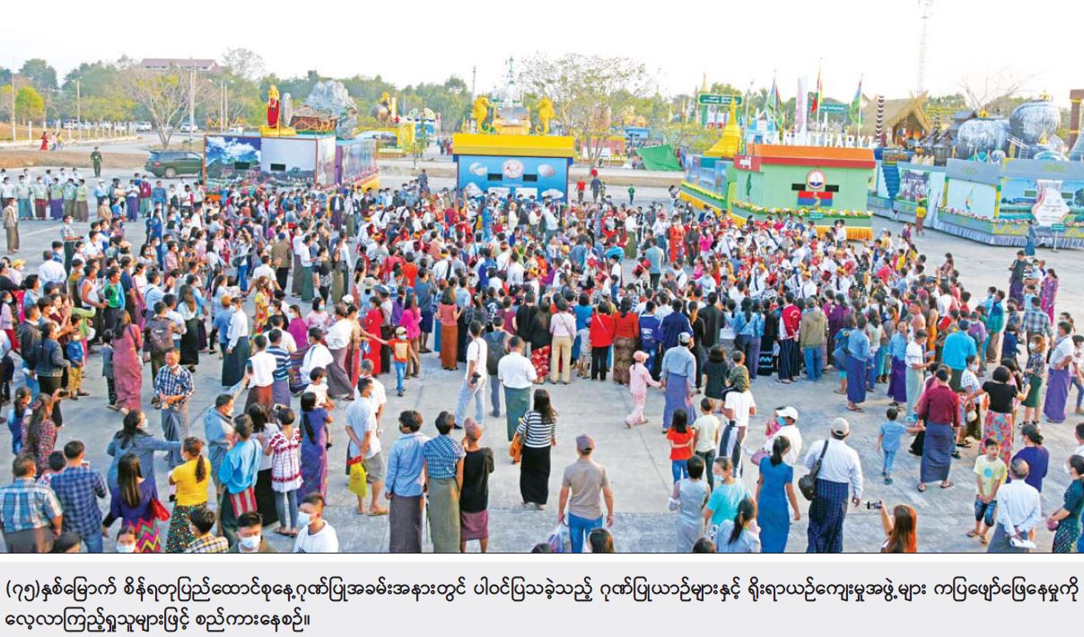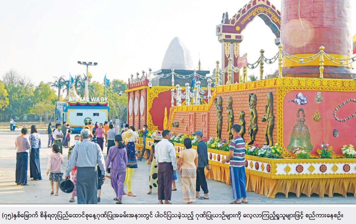 (၇၅)နှစ်မြောက် စိန်ရတုပြည်ထောင်စုနေ့ဂုဏ်ပြု အခမ်းအနားတွင် ပါဝင်ပြသခဲ့သည့် ပြည်ထောင်စုနယ်မြေနှင့် တိုင်းဒေသကြီး/ ပြည်နယ်အသီးသီးမှ ဂုဏ်ပြုယာဉ်များအား နေပြည်တော်ဥပ္ပါတသန္တိ စေတီတော်ရှေ့ တပေါင်းကွင်း၌ ခင်းကျင်းပြသထားသည့်အပြင် တိုင်းရင်းသား ရိုးရာအစားအစာ များကိုလည်း သတ်မှတ်နေရာများအလိုက် ရောင်းချပေးလျက်ရှိရာ လာရောက်လေ့လာ ကြည့်ရှုသူများဖြင့် အထူးစည်ကားလျက်ရှိသည်။