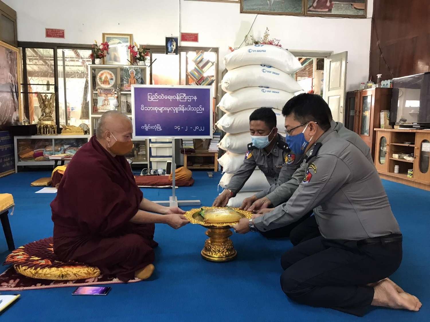 ပြည်ထဲရေးဝန်ကြီးဌာန၊ တပ်ဖွဲ့ဝင်/ဝန်ထမ်း အရာထမ်း၊ အမှုထမ်းမိသားစုများက မြို့နယ်အသီးသီးရှိ ဘုန်းတော်ကြီးကျောင်းများသို့ ဆွမ်းဆန်တော်များ ဆက်ကပ်လှူဒါန်းခြင်းကို ဆောင်ရွက်လျက်ရှိသည်။