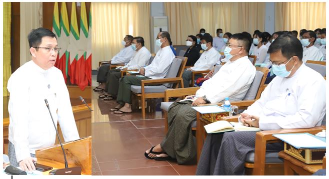 အခမ်းအနား၌ ပြည်ထောင်စုဝန်ကြီးက အခမ်းအနားသို့ တက်ရောက်လာကြသည့် ဝန်ထမ်းများအနေဖြင့် ပြည်ထောင်စုအလံတော်သယ်ယူရေးအဖွဲ့ တာဝန်များကို အောင်မြင်စွာဆောင်ရွက်နိုင်ခြင်း နှင့် ဖေဖော်ဝါရီ (၁၂) ရက်က ကျင်းပပြုလုပ်ခဲ့သည့် ၇၅ နှစ်မြောက် စိန်ရတုပြည်ထောင်စုနေ့ အခမ်းအနားသို့ ဝန်ကြီးဌာနကိုယ်စားပြု တပ်ခွဲတွင်ပါဝင်ပြီး အောင်မြင်ပြီးမြောက်အောင် ဂုဏ်ပြုချီ တက်ခဲ့မှုအား နိုင်ငံတော်ကိုယ်စား၊ ဝန်ကြီးဌာနကိုယ် စား ဂုဏ်ပြုအမှာစကားပြောကြားရန် ယခုအခမ်းအနားကို ကျင်းပပြုလုပ်ရခြင်းဖြစ်ကြောင်း။