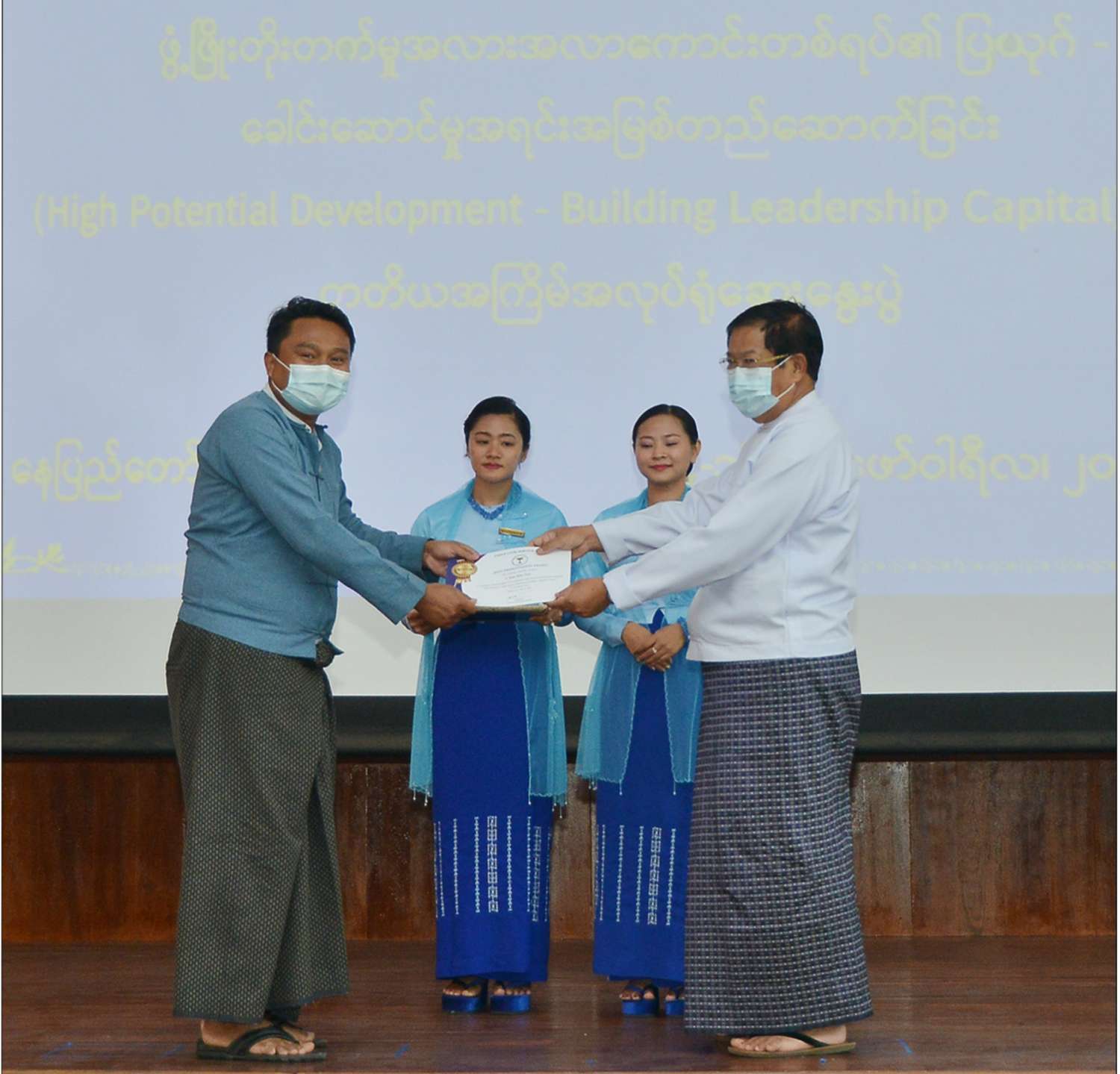 ပြည်ထောင်စုရာထူးဝန်အဖွဲ့ကွပ်ကဲမှုအောက်ရှိ ဉီးစီးဌာနများနှင့်ဗဟိုဝန်ထမ်းတက္ကသိုလ်များမှ အရာထမ်း၊ အမှုထမ်းများဖြင့်ဆောင်ရွက်ခဲ့သော ဖွံ့ဖြိုးတိုးတက်မှု အလား အလာကောင်း တစ်ရပ်၏ ပြယုဂ်-ခေါင်းဆောင်မှုအရင်းအမြစ် တည်ဆောက်ခြင်းဆိုင်ရာ တတိယအကြိမ် အလုပ်ရုံဆွေးနွေးပွဲ ပိတ်ပွဲအခမ်းအနားကို ယနေ့ နံနက် ၄ နာရီက ပြည်ထောင်စုရာထူးဝန်အဖွဲ့ စုပေါင်းခန်းမ၌ ကိုဗစ်-၁၉ ရောဂါဆိုင်ရာ ထုတ်ပြန်ထားရှိသော စည်းကမ်းသတ်မှတ်ချက်များ နှင့်အညီ ကျင်းပသည်။