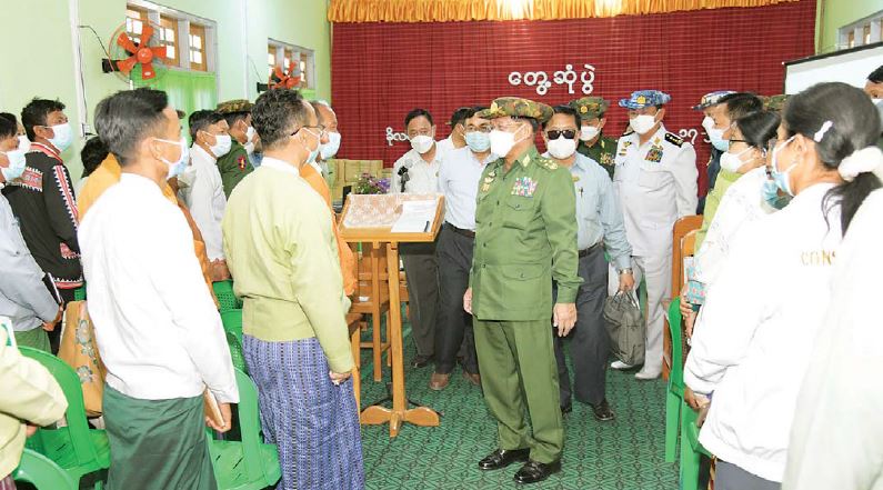 နိုင်ငံတော်စီမံအုပ်ချုပ်ရေးကောင်စီဥက္ကဋ္ဌ နိုင်ငံတော်ဝန်ကြီးချုပ် ဗိုလ်ချုပ်မှူးကြီး မင်းအောင်လှိုင်သည် ရှမ်းပြည်နယ်(အရှေ့ပိုင်း) ကျိုင်းတုံမြို့နယ်၊ မိုင်းပျဉ်းမြို့နယ်နှင့် ရှမ်းပြည်နယ်(တောင်ပိုင်း) လွိုင်လင်ခရိုင်၊ နမ့်စန်မြို့နယ်နှင့် ခိုလမ်မြို့တို့တွင် တာဝန် ထမ်းဆောင် လျက်ရှိသည့် ဌာနဆိုင်ရာတာဝန်ရှိသူများ၊ မြို့မိမြို့ဖများအား ယနေ့တွင် အဆိုပါမြို့နယ်များရှိ မြို့နယ်ခန်းမများ၊ အထွေထွေအုပ်ချုပ်ရေးမှူးရုံးခန်းမများ၌ သီးခြားစီတွေ့ ဆုံ၍ ဒေသဖွံ့ဖြိုးတိုးတက်ရေးဆိုင်ရာများအား ဆွေးနွေးပြောကြား သည်။