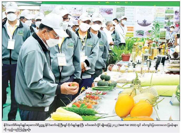 စိုက်ပျိုးရေး၊ မွေးမြူရေးနှင့် ဆည်မြောင်းဝန်ကြီးဌာန၊ စိုက်ပျိုးရေးဦးစီးဌာက ကျင်းပပြုလုပ်သည့် မျိုးစေ့ပြပွဲ ၂၀၂၂ (Seed Fair 2022) ဖွင့်ပွဲအခမ်းအနားကို ယနေ့နံနက်ပိုင်းတွင် နေပြည်တော်ကောင်စီနယ်မြေ ပျဉ်းမနားမြို့ စိုက်ပျိုးရေးသိပ္ပံကျောင်း၌ကျင်းပရာ နိုင်ငံတော်စီမံအုပ်ချုပ်ရေး ကောင်စီဥက္ကဋ္ဌ နိုင်ငံတော်ဝန်ကြီးချူပ် ဗိုလ်ချုပ်မှူးကြီး မင်းအောင်လှိုင် တက်ရောက်ဖွင့်လှစ်ပြီး အမှာစကားပြောကြားသည်။