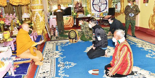 ယင်းနောက် နိုင်ငံတော်စီမံအုပ်ချုပ်ရေးကောင်စီအဖွဲ့ဝင် ကာကွယ်ရေးဝန်ကြီးဌာန၊ ပြည်ထောင်စု ဝန်ကြီး ဗိုလ်ချုပ်ကြီး မြထွန်းဦး၊ ဦးမောင်းဟာနှင့် အဖွဲ့ဝင်များ သည် ဟားခါးမြို့၊ ပြည်နယ်ရဲတပ်ဖွဲ့မှူးရုံးသို့ ရောက်ရှိပြီး ပြည်နယ်ရဲတပ်ဖွဲ့ဝင်များနှင့် တွေ့ဆုံကာ နယ်မြေဒေသတည်ငြိမ်အေးချမ်းရေးဆိုင်ရာ ကိစ္စများနှင့်ပတ်သက်၍ လိုအပ်သည်များ ဆွေးနွေးမှာကြားပြီးနောက် စားသောက်ဖွယ်ရာများ ထောက်ပံ့ပေး အပ်သည်။ ထိုမှတစ်ဆင့် ဟားခါးမြို့၊ တောင်တန်းသာသနာပြုဆရာတော် ဘဒ္ဒန္တ ဒေါက်တာ အရှင်တေဇောသာရ အား သွားရောက်ဖူးမြော်ကြည်ညိုပြီး လှူဖွယ်ပစ္စည်း များ၊ ဝတ္ထုငွေများ ဆက်ကပ်လှူဒါန်း ကြသည်။