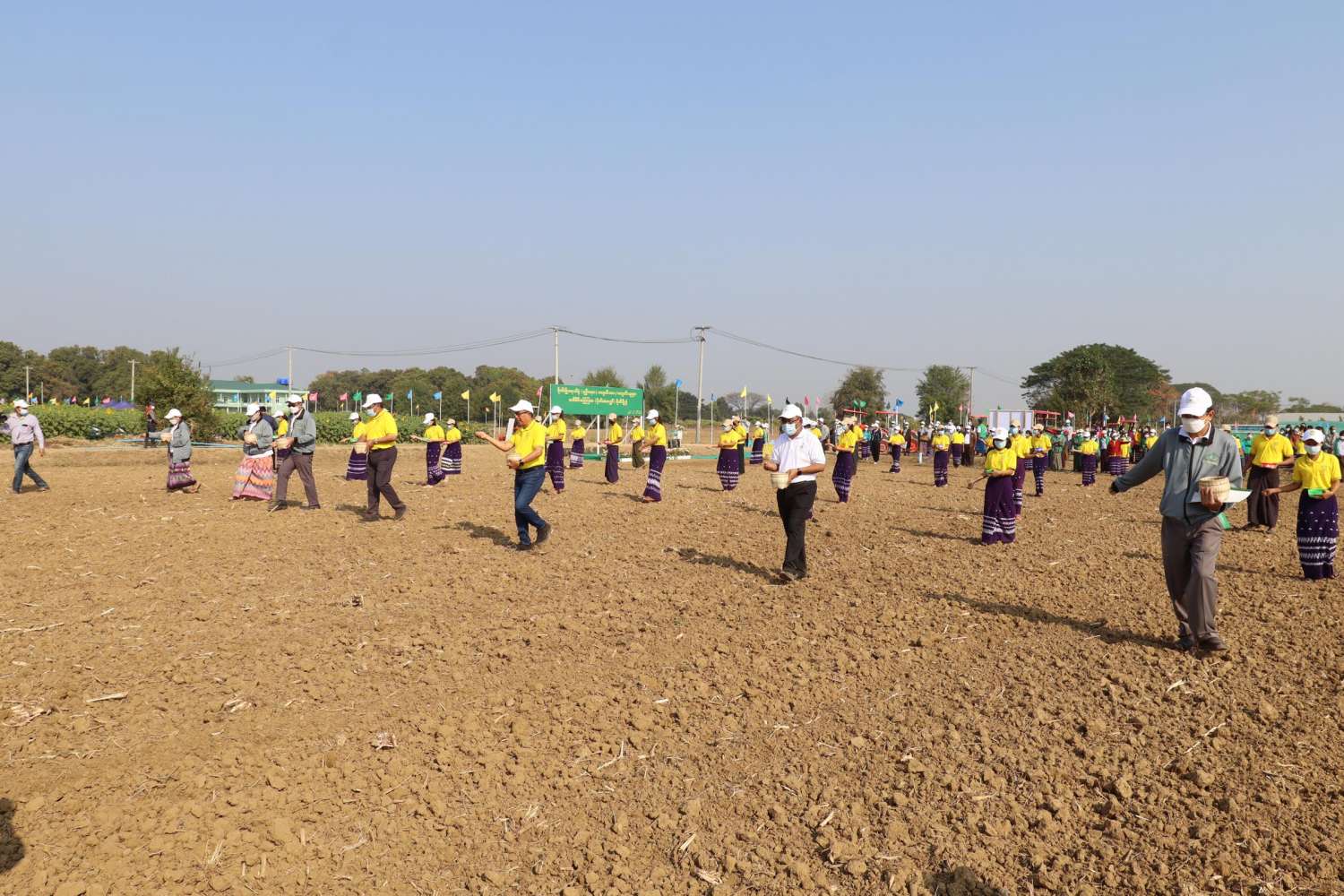 သစ်စိမ်းမြေဩဇာစိုက်ပျိုးရေး ပိုက်ဆံလျှော်မျိုးစေ့ ကြဲပက်ပွဲအခမ်းအနားကို ယနေ့ နံနက်ပိုင်းက “မျိုးစေ့ပြပွဲ ၂၀၂၂” ၏ စနစ်ကျ စက်မှုလယ်ယာမြေ ပြကွက်တွင် ကျင်းပသည်။