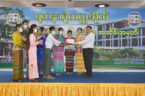 ဆက်လက်၍ ရတနာပုံတက္ကသိုလ်ပါမောက္ခချုပ် ဒေါက်တာတင့်မိုးသူဇာက တက္ကသိုလ်နှစ်ပတ်လည် အမှတ်တရစကား ပြောကြားပြီးနောက် (၂၂)နှစ်မြောက် နှစ်ပတ်လည်နေ့ အထိမ်းအမှတ်ပြပွဲ ပြိုင်ပွဲများ၊ စာတမ်းဖတ်ပွဲနှင့် သင်တန်းဆင်းပွဲများအတွက် ဂုဏ်ပြုဆုများ ချီးမြှင့်သည်။