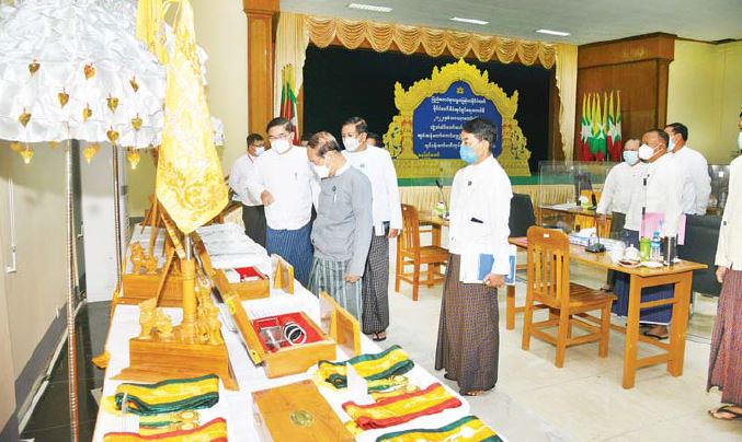 ထို့နောက် ဆပ်ကော်မတီများက ၂၀၂၂ ခုနှစ် သာသနာတော်ဆိုင်ရာ ဘွဲ့တံဆိပ်တော်များ ဆက်ကပ်လှူဒါန်းပွဲနှင့် ဆွမ်းဆန်တော် လောင်းလှူပွဲအခမ်းအနား အောင်မြင်စွာ ကျင်းနိုင်ရေးအတွက် သက်ဆိုင်ရာ ဆပ်ကော်မတီအလိုက် ဆောင်ရွက်ထားရှိမှု အခြေအနေများကို တင်ပြဆွေးနွေးခဲ့ကြပြီး တင်ပြချက်များအပေါ် သာသနာရေးနှင့် ယဉ်ကျေးမှုဝန်ကြီးဌာန၊ ပြည်ထောင်စုဝန်ကြီးက လိုအပ်သည်များ လမ်းညွှန်မှာကြားပြီး ယင်းနောက် သာသနာတော်ဆိုင်ရာ ဘွဲ့တံဆိပ်တော်များ ဆက်ကပ်လှူဒါန်းပွဲတွင် ဆက်ကပ်မည့် ဘွဲ့တံဆိပ် အဆောင်အယောင်ပစ္စည်းများကို ကြည့်ရှုစစ်ဆေးခဲ့ကြောင်း သိရသည်။