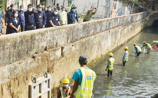 ရန်ကုန်တိုင်းဒေသကြီး စည်ပင်သာယာရေးဝန်ကြီး၊ ရန်ကုန်မြို့တော် စည်ပင်သာယာရေးကော်မတီဥက္ကဋ္ဌ (မြို့တော်ဝန်) ဦးဗိုလ်ဌေးသည် တာဝန်ရှိသူများနှင့်အတူ ယနေ့နံနက်ပိုင်းက ကမာရွတ်မြို့နယ်နှင့် လှိုင်မြို့နယ်အကြား ဘုရင့်နောင်လမ်းမပေါ်ရှိ ကမာရွတ်ချောင်း ရေစီးရေလာကောင်းစေရန် ရှင်းလင်းနေမှုကို ကြည့်ရှုစစ်ဆေးပြီး ချောင်းအတွင်း ရေဆင်းမြောင်းများ ပိတ်ဆို့မှုမရှိစေရေး ရှင်းလင်းရန်နှင့် ချောင်းကမ်းတစ်လျှောက် မြေညှိရန် မှာကြားသည်။