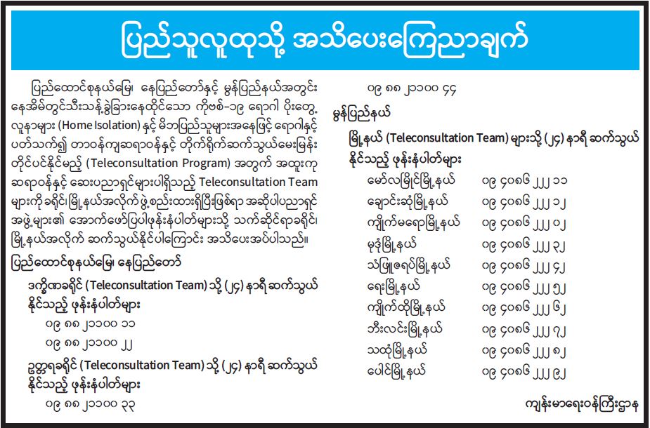 ပြည်သူလူထုသို့ အသိပေးကြေညာချက်