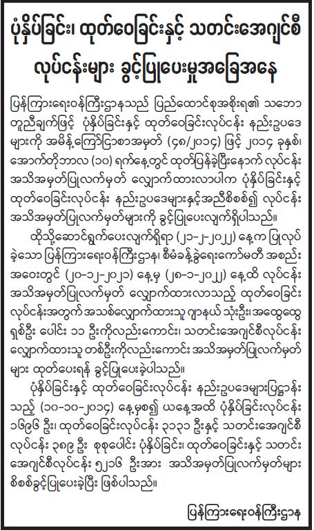 ပုံနှိပ်ခြင်း၊ ထုတ်ဝေခြင်းနှင့် သတင်းအေဂျင်စီလုပ်ငန်းများ ခွင့်ပြုပေးမှုအခြေအနေ 02/24/2022 ပုံနှိပ်ခြင်း၊ ထုတ်ဝေခြင်းနှင့် သတင်းအေဂျင်စီလုပ်ငန်းများ ခွင့်ပြုပေးမှုအခြေအနေ