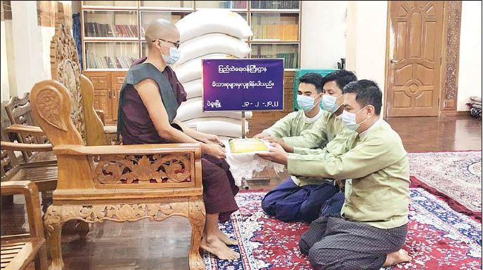 ထိုသို့ ဆောင်ရွက်လျက်ရှိရာ ယနေ့တွင် ကချင်ပြည်နယ် မိုးညှင်းမြို့နယ်ရှိ ထီးလင်းကျောင်းတိုက်သို့ လည်းကောင်း၊ တနင်္သာရီ တိုင်းဒေသကြီး ထားဝယ်မြို့နယ်ရှိ ဝဲကြီးတောင်ကျောင်းတိုက်သို့လည်းကောင်း၊ ပဲခူးတိုင်းဒေသကြီး ပဲခူးမြို့နယ်ရှိ ချမ်းမြေ့ ဇေယျာသာမဏေ ကျော်တက္ကသိုလ်သို့ လည်းကောင်း၊ ရန်ကုန်တိုင်းဒေသကြီး ပုဇွန်တောင်မြို့နယ်ရှိ စင်ကာပူကျောင်း ပရိယတ္တိစာသင်တိုက်သို့ လည်းကောင်း၊ ရှမ်းပြည်နယ် နောင်ချိုမြို့နယ်ရှိ စိန်ရတနာပရိယတ္တိ စာသင်တိုက်သို့ လည်းကောင်း၊ ဧရာဝတီတိုင်းဒေသကြီး ညောင်တုန်းမြို့နယ်ရှိ တောင်ညိုစာသင်တိုက်သို့လည်းကောင်း ဆရာတော်၊ သံဃာတော်များအတွက် ဆွမ်းဆန်တော်များကို တာဝန်ရှိသူများက သွားရောက် ဆက်ကပ်လှူဒါန်းခဲ့ ကြကြောင်းသိရသည်။