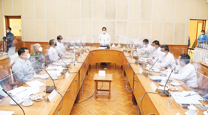 (၇၅) နှစ်မြောက် စိန်ရတု ပြည်ထောင်စုနေ့ ကျင်းပရေး စီမံခန့်ခွဲမှုကော်မတီနှင့် ပြည်ထောင်စု အလံတော် သယ်ဆောင်ရေး ဆပ်ကော်မတီ အဖွဲ့ဝင်များအား ဂုဏ်ပြုပွဲ အခမ်းအနားနှင့် လုပ်ငန်း ဆောင်ရွက်ရာတွင် တွေ့ကြုံခဲ့ရသည့် အားသာချက်၊ အားနည်းချက်များနှင့်စပ်လျဉ်း၍ သုံးသပ်ညှိနှိုင်း အစည်းအဝေးကို ယနေ့မွန်းလွဲပိုင်းက နေပြည်တော် စည်ပင်သာယာရေး ကော်မတီ၊ အစည်းအဝေးခန်းမ၌ ကျန်းမာရေးဝန်ကြီးဌာနမှ ထုတ်ပြန်ထားသော ကိုဗစ်-၁၉ ရောဂါ သတ်မှတ်စည်းကမ်းချက် များနှင့်အညီ ကျင်းပသည်။